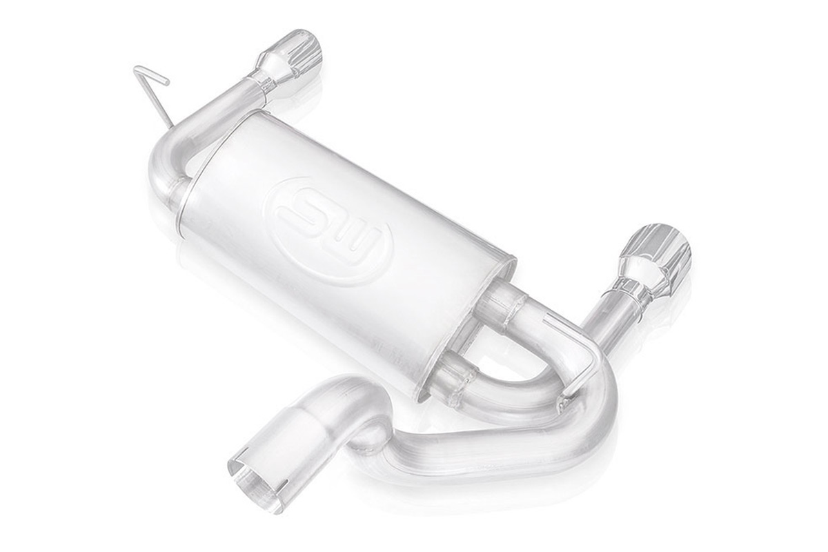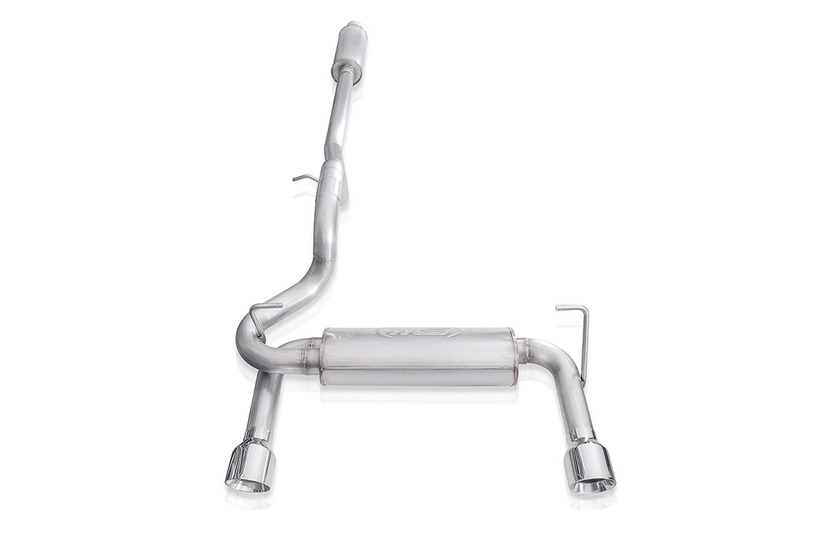 All three of these new exhaust system features 304 stainless steel, and it’s fully tig welded for the strongest possible construction. The axle back system is designed to improve the sound of your JL Wrangler, but the performance benefits are relatively small as since it’s only the rear section. The two catbacks will be available with either the standard axle back section or as a dumped system. The dumped system is much louder as it doesn’t have the rear muffler section.