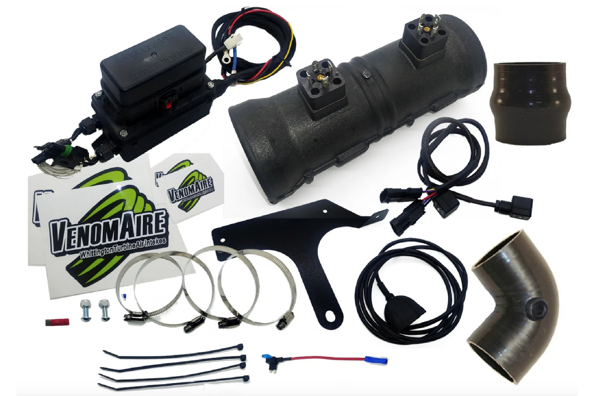 The VenomAire Venom2XS Turbine Air Intake System is a computer-controlled multi-stage and multi-spool axial compressor. It monitors and adjusts the mass air intake of combustion engines and interacts with the engine’s throttle to deliver unparalleled performance, improved fuel economy, and reduced pollution. It delivers an immediate on-demand variable increase of airflow to your car’s engine to improve volumetric efficiency and increase power throughout the entire RPM range.