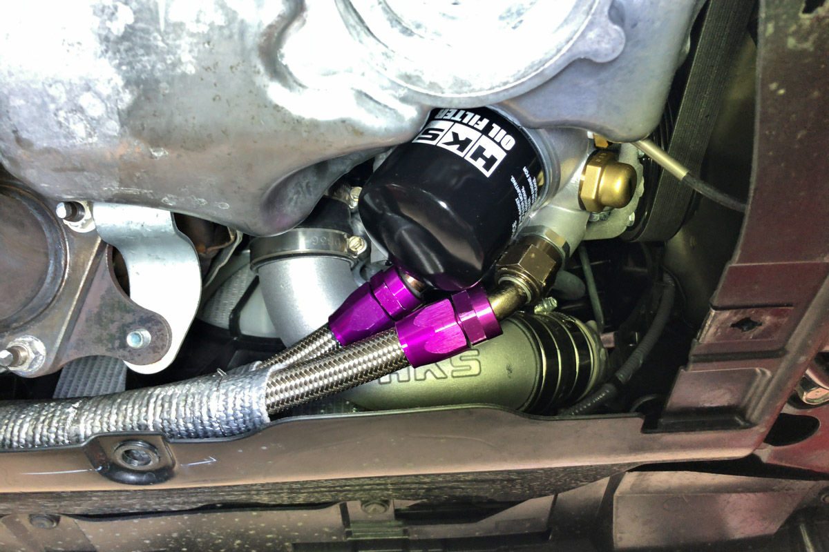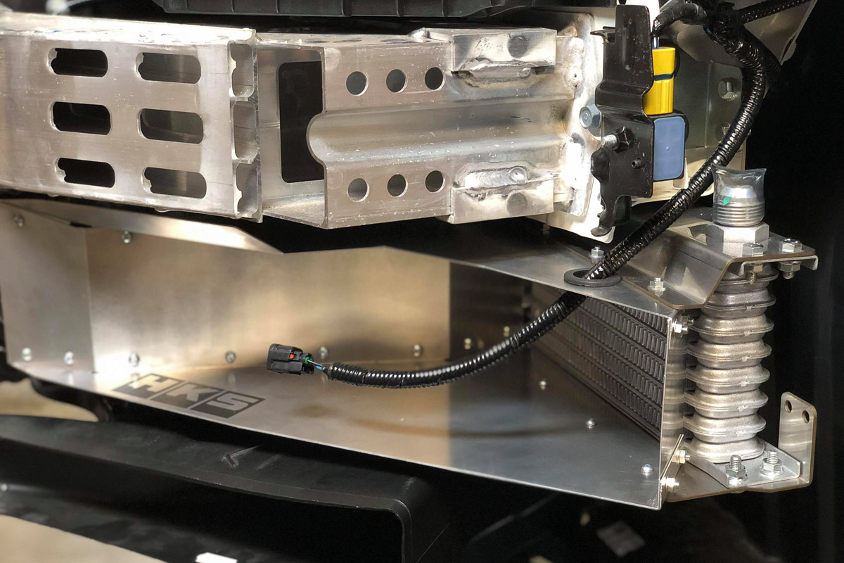 Separate from the new suspension error canceller is the new oil cooler kit. A few other companies have already developed oil coolers which mount on the driver side near the fog light, but those kits are missing a way to direct air to the oil cooler properly. HKS fixed this by offering a unique air duct which directs air to the oil cooler for maximum efficiency. It is designed to go in an unused area of the left part of the front bumper. By mounting it in an unused location, airflow to the radiator and intercooler will not be negatively affected. Without this oil cooler, you run the risk of the oil reaching a temperature where it can begin to lose it’s lubricity and can no longer appropriately lubricate the engine.