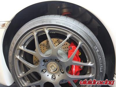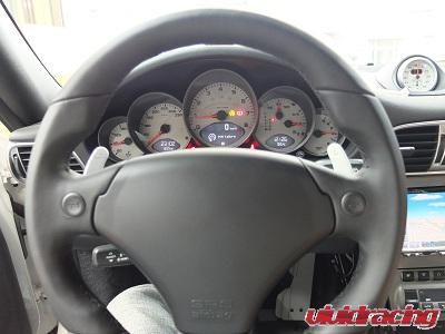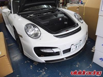 Our customer from Japan sent us these photos of his work in process. The car is a Porsche 997 C4s. The C4s is the same body as the Turbo but with the 3.8L NA motor. Many aftermarket aero kits will fit the C4s as they do the Turbo, so this vehicle is a great modifying platform. As we all know, they do it bigger in Japan! This customer has gone the distance by adding such high quality (and price) products such as the GruppeM cold air intake. The full carbon fiber cold air intake retails for over $3000! Also on the car is a set of HRE P40 Monoblok wheels. Behind these amazingly light wheels is the Porsche GT3 6piston Brake Upgrade with 350mm rotors. Updating the outside is a NR Auto GT aero kit. Complete with front bumper featuring a carbon fiber lower lip, rear bumper with carbon fiber diffuser, and a rear GT spoiler with aluminum uprights. Inside the car he has added a DAS Roll Bar powdercoated to match and some Recaro bucket racing seats. Because this is a TipTronic and the factory buttons on the steering wheel are weak, he has upgraded the steering wheel with a paddle shift design. Stay tuned to his Gallery Here for more updates as they come in!
