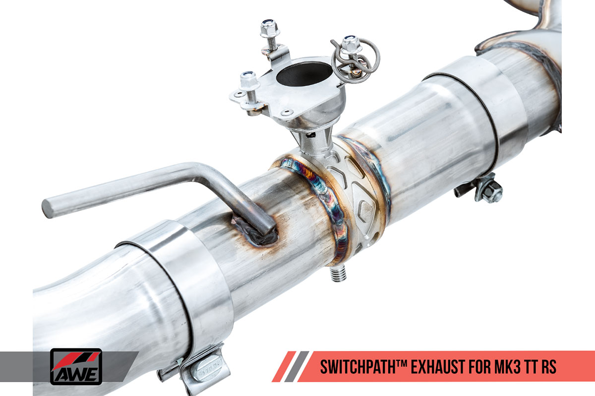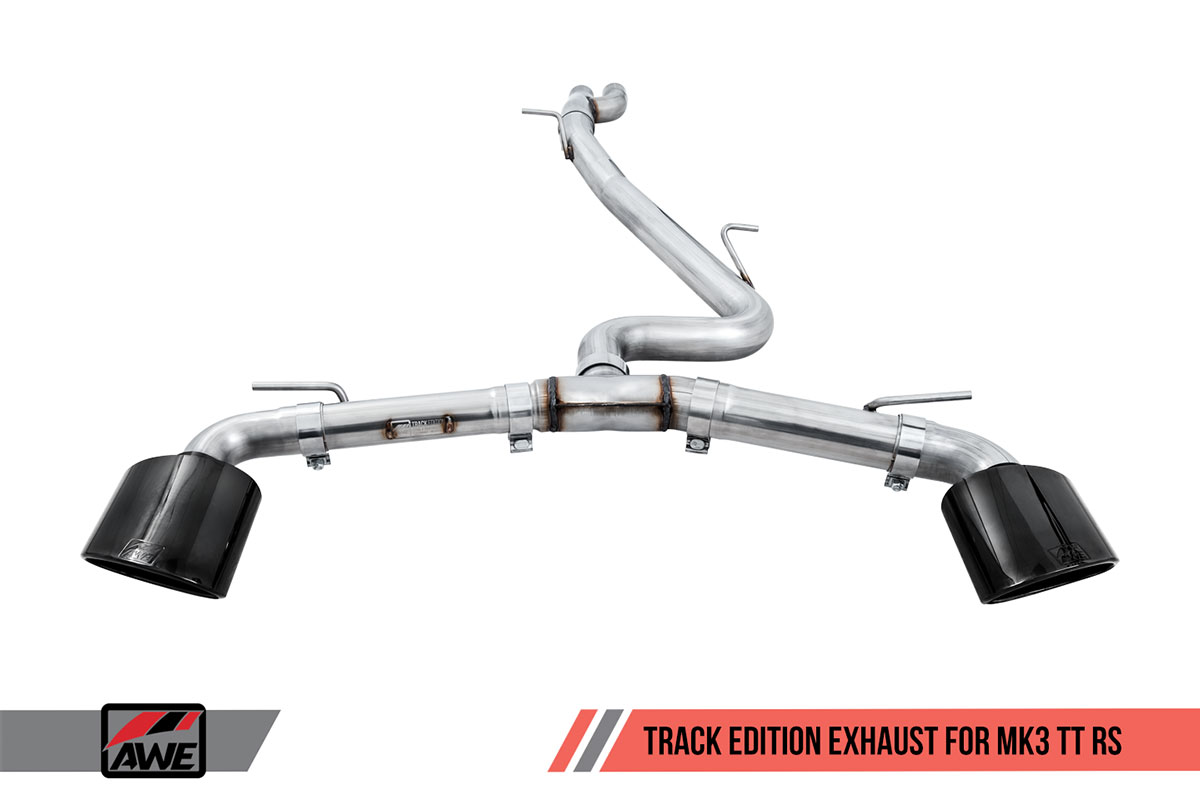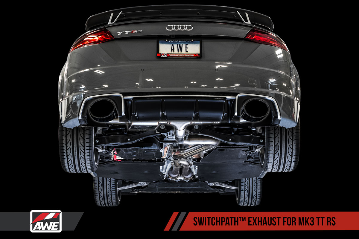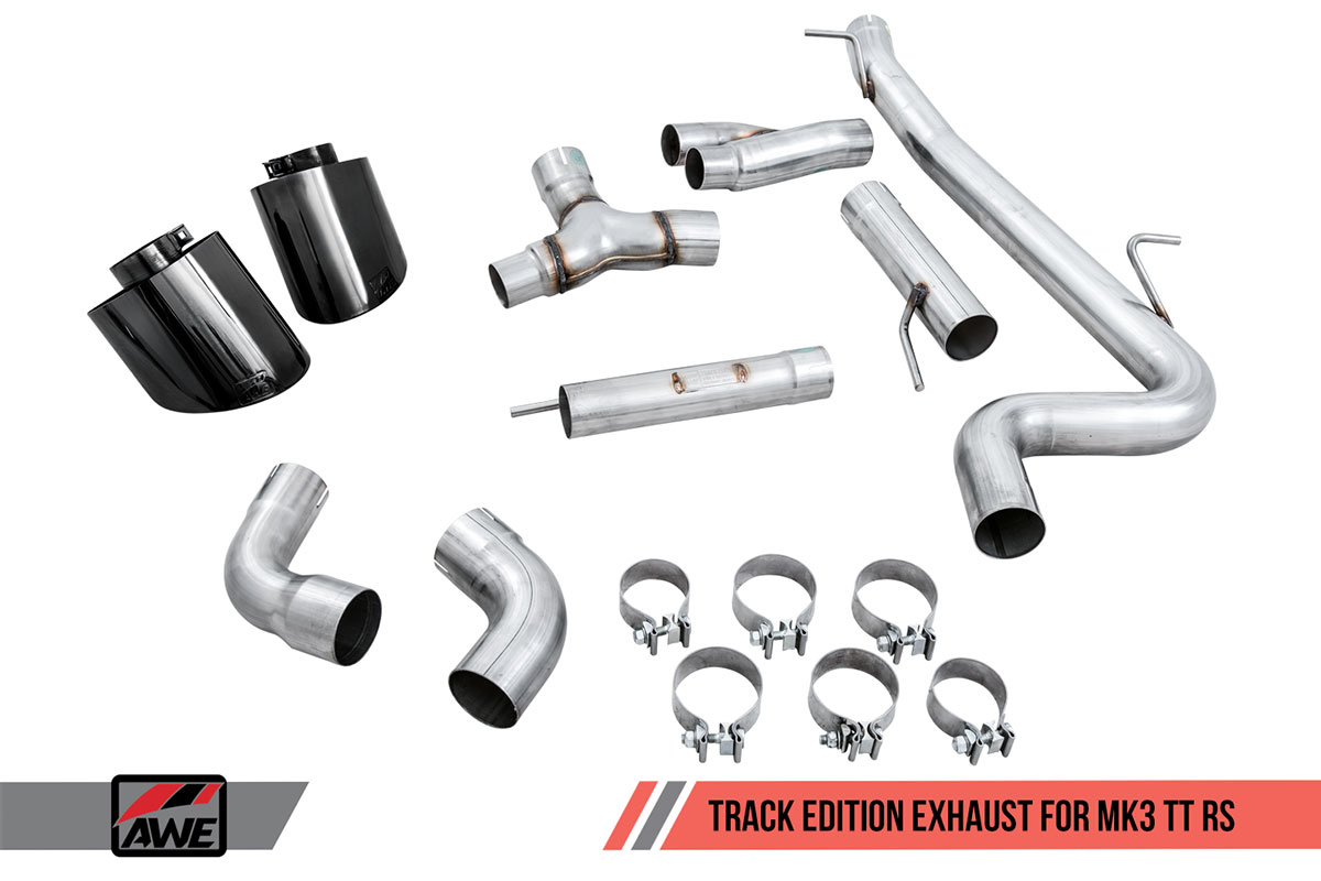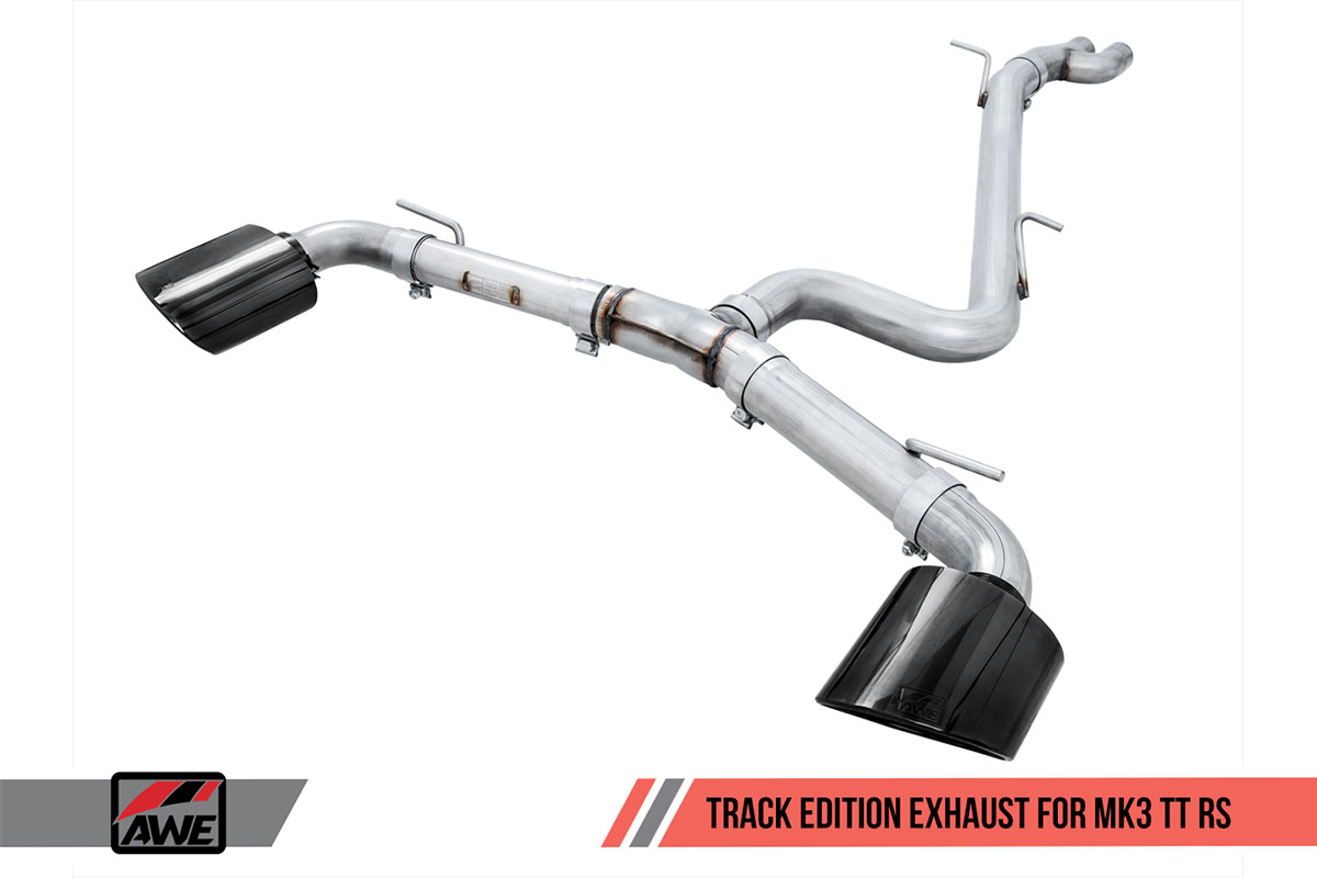 Considering the TT RS is designed to be a small luxury car, it has a relatively quiet exhaust tone. Luckily, AWE has a solution to quiet exhaust with their new exhaust suite. For those who want the perfect balance between a loud exhaust and quiet exhaust, the AWE SwitchPath exhaust is perfect. For TT RS owners who want the loudest exhaust note possible, AWE offers their Track Edition exhaust which has no mufflers or resonators.