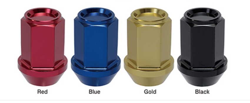 The Project KICS Leggdura Lug Nut in M12x1.25 and M12x1.50 thread pitches is nearly equal in weight as the typical aluminum nut yet, with its duralumin construction, is as tough as OEM. These Leggdura lugs are closed ended and anodized colors for a finished appearance. All Leggdura Lug Nuts are sold in sets of 20 consisting of 16 standard 17mm hex lugs with 4 locking lugs.