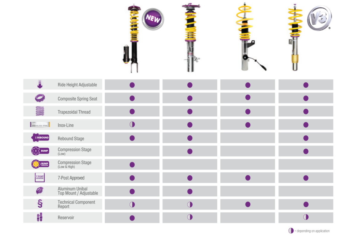 KW 3-WAY CLUBSPORT COILOVER KIT: Street-capable race track performance backed by race-winning pedigree! Cutting-edge 3-way motorsports technology for those who enjoy superior handling and performance on the road or track.