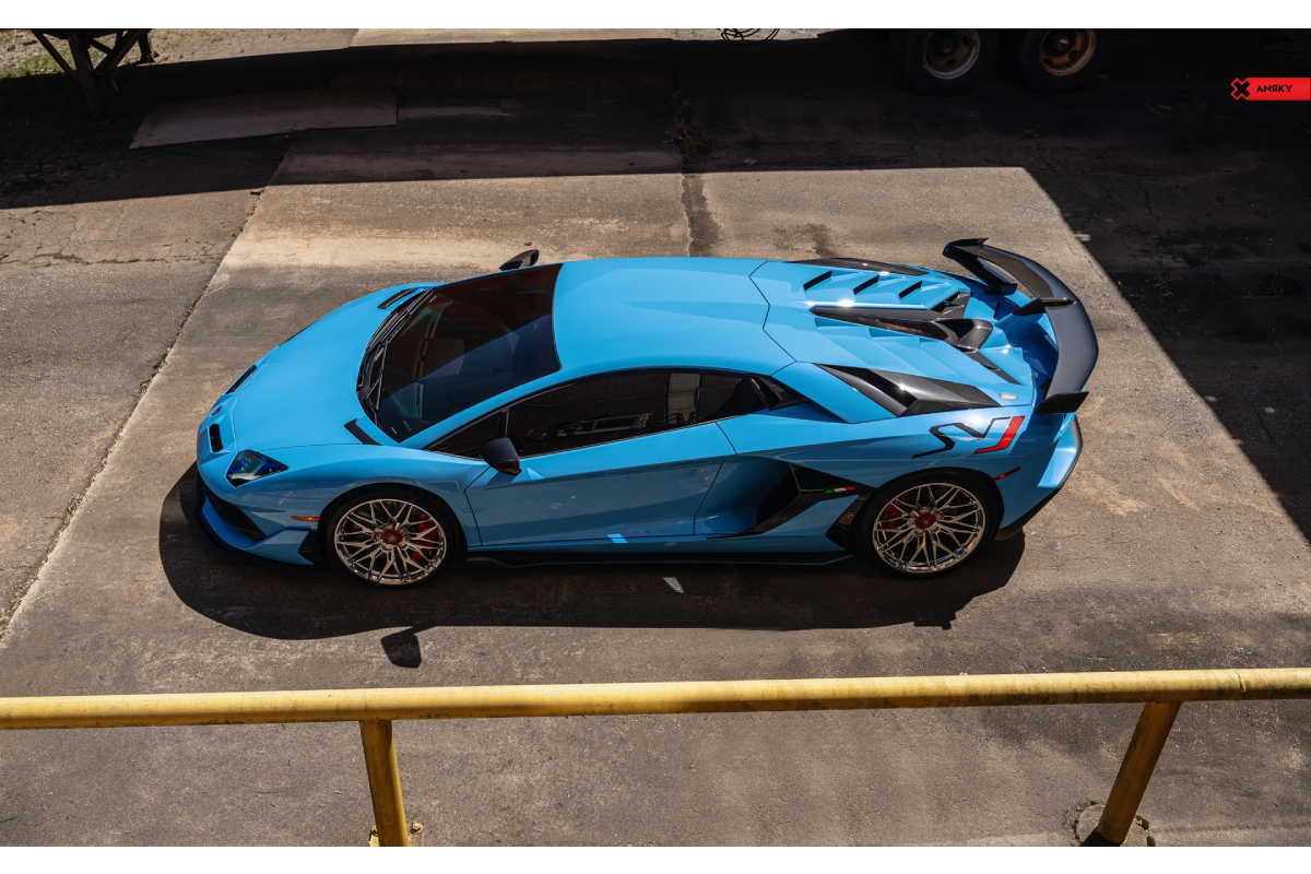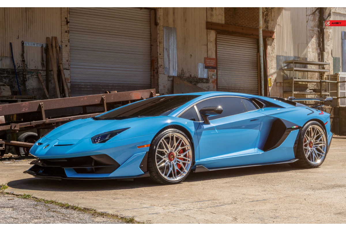 This SVJ from exotic car seller R3 Motorcars is sitting on a set of ANRKY W X|Series S1-X1 monoblock wheels. It wears 20×9.5 wheels in the front and 21×13 wheels at the rear wrapped in OEM Pirelli tires. These S1-X1 wheels feature a Mirror Polished Clear finish with an ANRKY centerlock option that matches the large red calipers that peek out from behind the wheels. The X|Series from the ANRKY, the world’s best custom forged wheel manufacturer, features 1-piece and 3-piece configurations that are engineered, machined, and finished right here in the USA. The wheels in this lineup are vehicle load / G.A.W.R. specific and expertly made to be ultra-lightweight from 6061-T6 heat-treated forged aluminum.