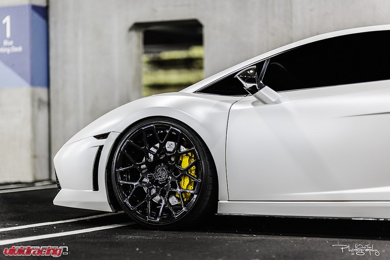 Another awesome release by Rennen forged wheels on this Lamborghini Gallardo. The Lamborghini Gallardo is a true testament to Italian performance, styling, and ingenuity. The customer wanted to figure out how to kick up a few notches with this hand-built Gallardo, which produces a monstrous 500+hp mated to a slick 6 speed transmission. They decided to take a step further and work to craft a Gallardo that represents unique and bold styling with just the right amount of aggressiveness. Right off the bat they knew they wanted wheels which will be one of the biggest changes look wise and increase its performance without any modifications. Since Rennen Forged is known to be one of the best custom forged wheels manufacturers, they turned to Rennen Forged right off the bat. We will describe these custom wheels some more, but they also decided to do a face-lift, given a RSC front LP560 bumper to bring out a more aggressive look. The rest of the car is no different, with Carbon fiber accents in just the right places, including the side skirts and rear diffuser. Complimenting these bold pieces are a superleggera Carbon fiber wing, MA carbon door handles and mirrors. Attention was paid to a fine detail, with carbon air boxes resting in a custom painted motor bay. No detail was left unturned. If this wasn’t enough, aural pleasure is intensified with a Larini Full Race exhaust. All this is encompassed with a Matte white vinyl wrapped by Phenomenal Vinyl.