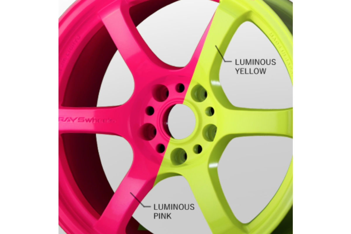 - Luminous Colors: Two vivid luminous colors with a larger presence are introduced for the 57DR wheel. These special colors (Luminous Yellow and Luminous Pink) make a huge impact, even on the drifting scene, with an eye-catching appearance.