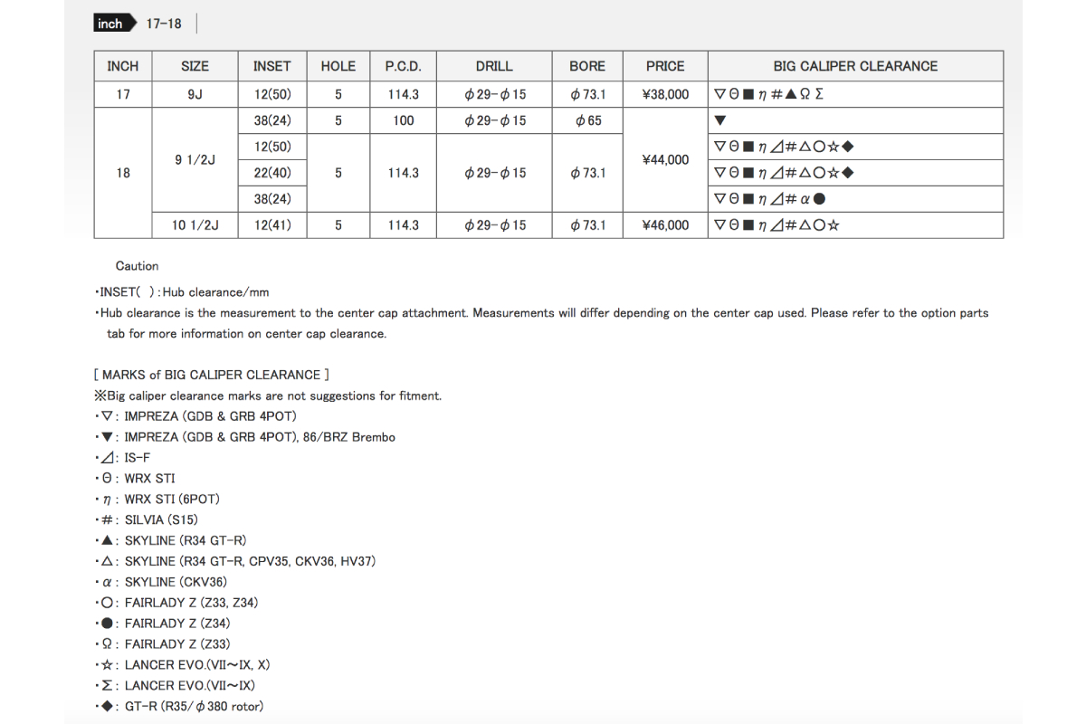 - Size Lineup: 10 1/2J, which has never been employed in the past luminous color models, has been adopted this time. The 17-inch 9J size, which is decreasing in the market, is also standard on this model’s lineup and is suitable for those recent drifting scenes.