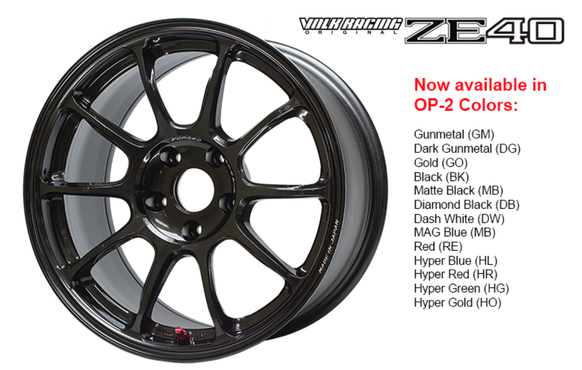 Volk Racing ZE40 Wheels are now available in OP-2 colors.