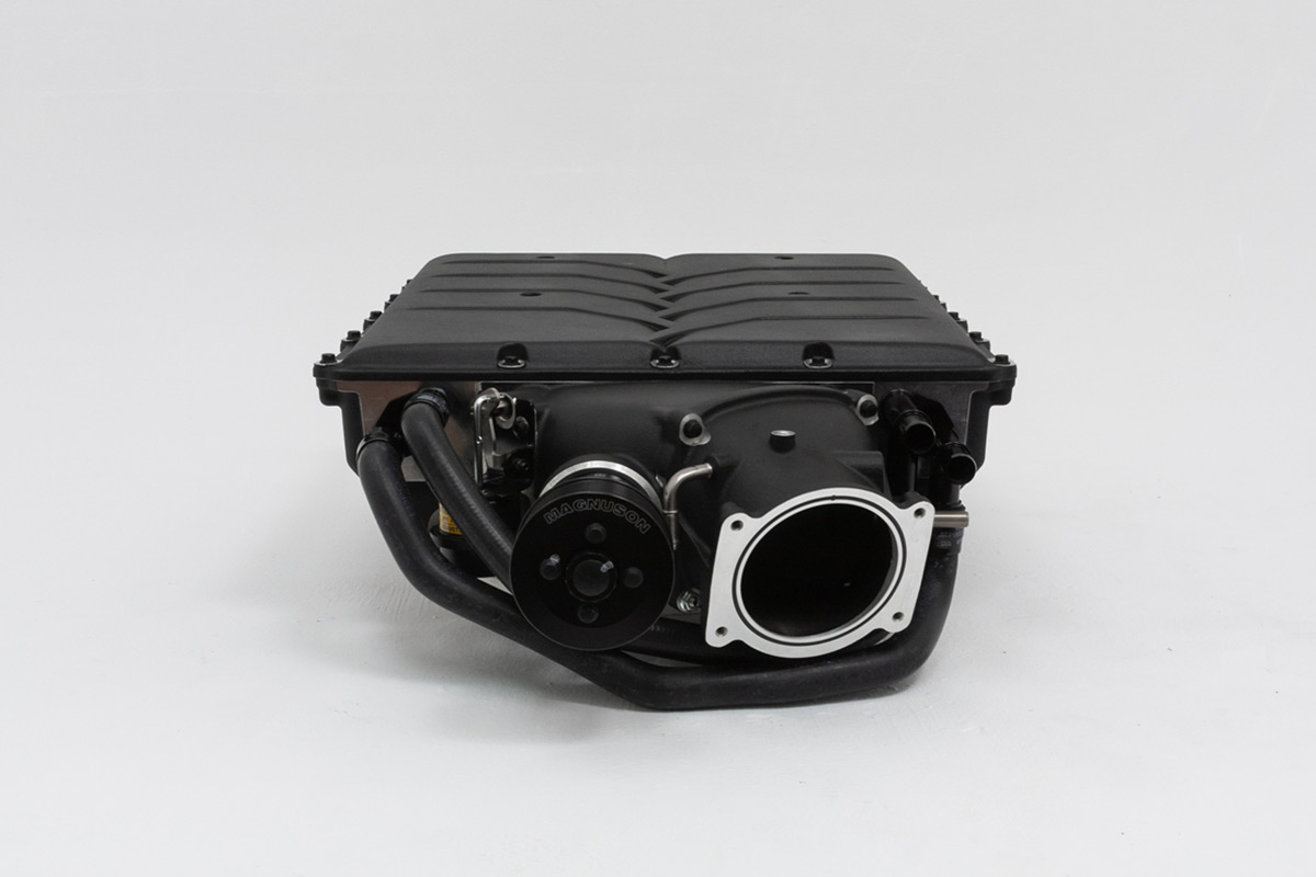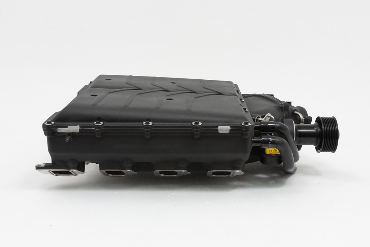This new supercharger is not only larger than the stock supercharger, allowing it to move more air and create more boost, it’s also more efficient. Staying at the stock boost level, a 50-60rwhp gain is achieved with this supercharger from the improved efficiency and cooler charge air temperatures. Since it’s also larger than the stock unit, a smaller pulley can be installed to increase boost. Assuming you have the fueling system to keep up with the larger demand, gains of over 300whp are possible with this supercharger.