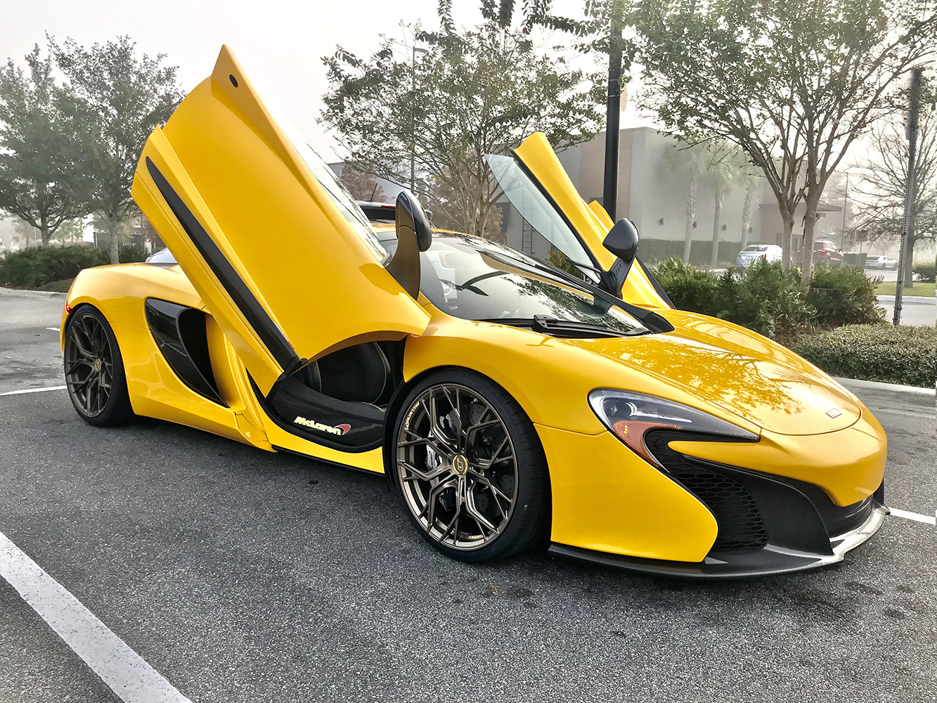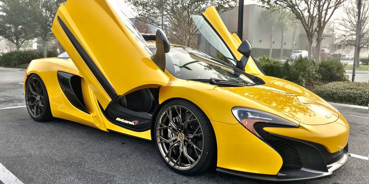 The McLaren 650S featured here is sporting Satin Bronze 20×8.5 wheels at the front and 21×12 wheels at the rear with a +27 and +35 offset respectively. These D05 monoblock wheels have a 5×112 bolt pattern with a 66.6 center bore. Each individual wheel weighs in at 10.9 kilograms (24 pounds) in the front and 13.9 kilograms (30.6 pounds) in the back with a 690-kilogram (1521-pound) load rating. Front tires are recommended to be 245/30/20s and the rear tires should measure 325/25/21 for that perfect fit.