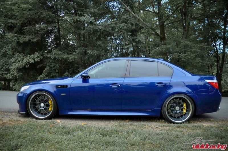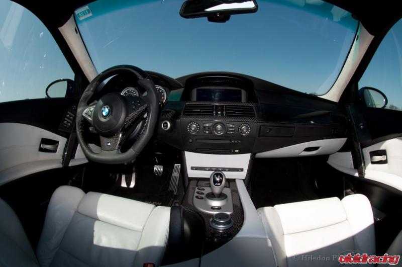 These are some amazing photos of this E60 BMW M5 from our customer in VA. His car got some new Brembo brakes that fill up the 20 inch wheels. The 6piston 405mm monster brakes in the front are finished off in yellow. The rear sports a 380mm 4piston for just the right balance. A complete Agency Power valvetronic exhaust system makes up some of the power mods. Following styling cues from our Project M5, he has even done up the interior with a carbon fiber trim kit and DCT steering wheel. Hey the model does not hurt either! Like the photos, check out more BMW M5 Parts Here.