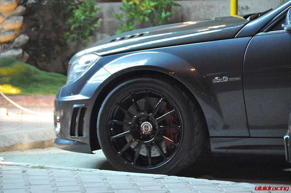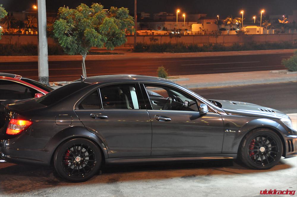 With over 700,000 views, we first hand know the performance and awesomeness of the Mercedes C63 sedan. This extremely popular chassis is just another one for tuners to get all over with. Besides the basic performance parts like a Renntech intake and Agency Power exhaust, styling and handling is what this ride needs. Our customer in Saudi Arabia hooked his Mercedes up with a set of HRE R43 Monoblok wheels in gloss black. The front 18×9 and rear 18×12 were built specifically for going fast and handling well. Wrapped with Toyo R888 tires, the front 255/35/18 with the rear 335/30/18 give all the traction this C63 needs. With its rear widebody spacers, HRE custom made a 23mm spacer to give it that very aggressive flush fit. This car is also sporting a carbon fiber trunk and hood, along with a Vorsteiner carbon fiber rear diffuser. Check out other Mercedes C63 Tuning Parts here.