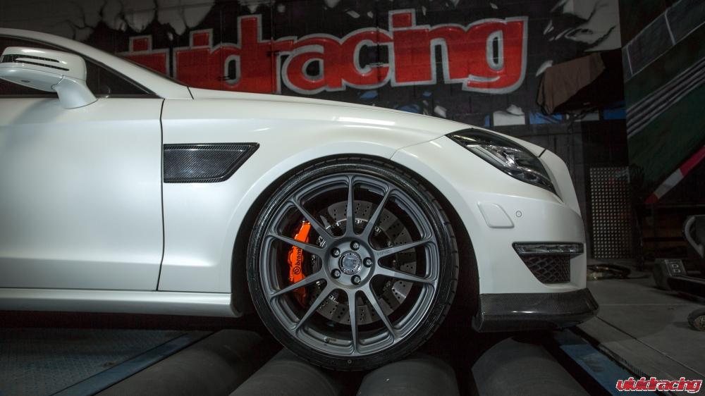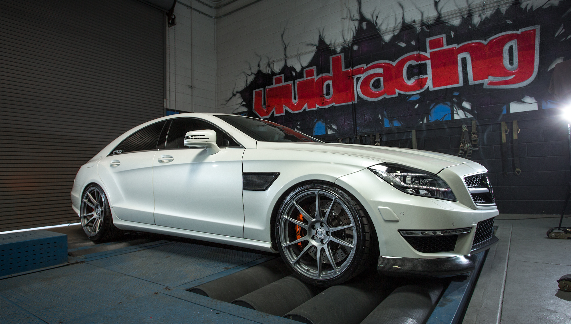 Our project Mercedes CLS63 is a super mean machine with its V8 Bi-Turbo engine. With our performance parts including Agency Power Downpipes and a Renntech ECU Flash, this monster makes 700HP! If you missed our Helicopter Pad Donut Video with our previous 21 inch HRE 794RS wheels, then you might have noticed that the combo might have been a little big. So we smashed heads and went back to a 20 inch setup with the new HRE P44SC wheel. In combination with our custom painted Brembo front and rear big brake kit and lowered with KW Coilovers, we took some stunning photos of the Merc sitting on the Vivid Racing Dyno. Enjoy the photos and check out more CLS63 stuff at www.vividracing.com/cls63.