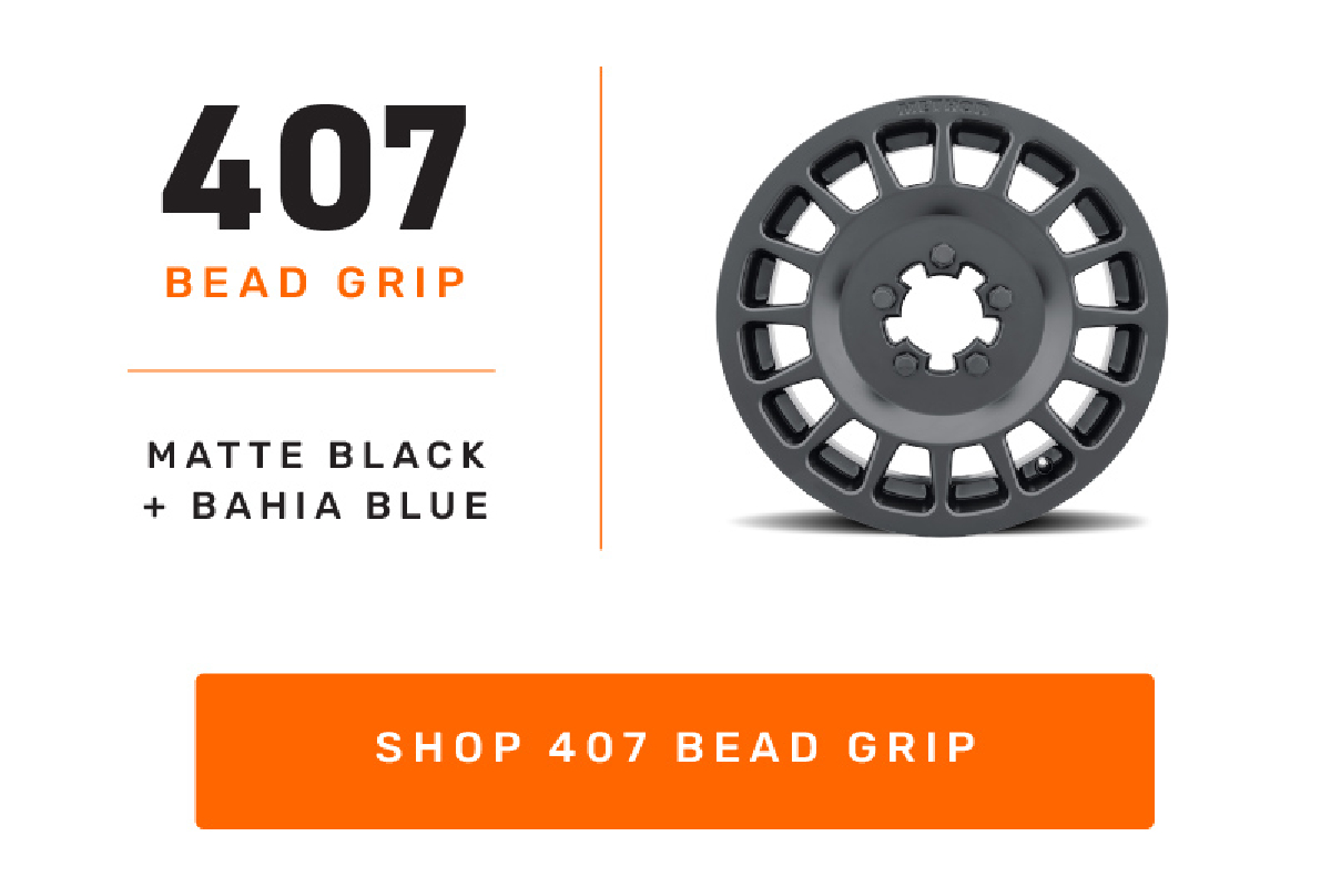 The 407 wheel showcases a rally-inspired multi-spoke design with a debossed METHOD logo on the outer lip. The unique Bahia Blue color option was inspired by the coastline of the Baja peninsula, and is sure to turn your UTV into the ultimate show-stopper. The hub of the 407 Bead Grip wheel was cut and designed to remove any unnecessary material to reduce weight. It has load ratings that far exceed OEM and competitor wheels while being equal or lower in weight. The reduced weight can result in improved acceleration, handling, and fuel efficiency.