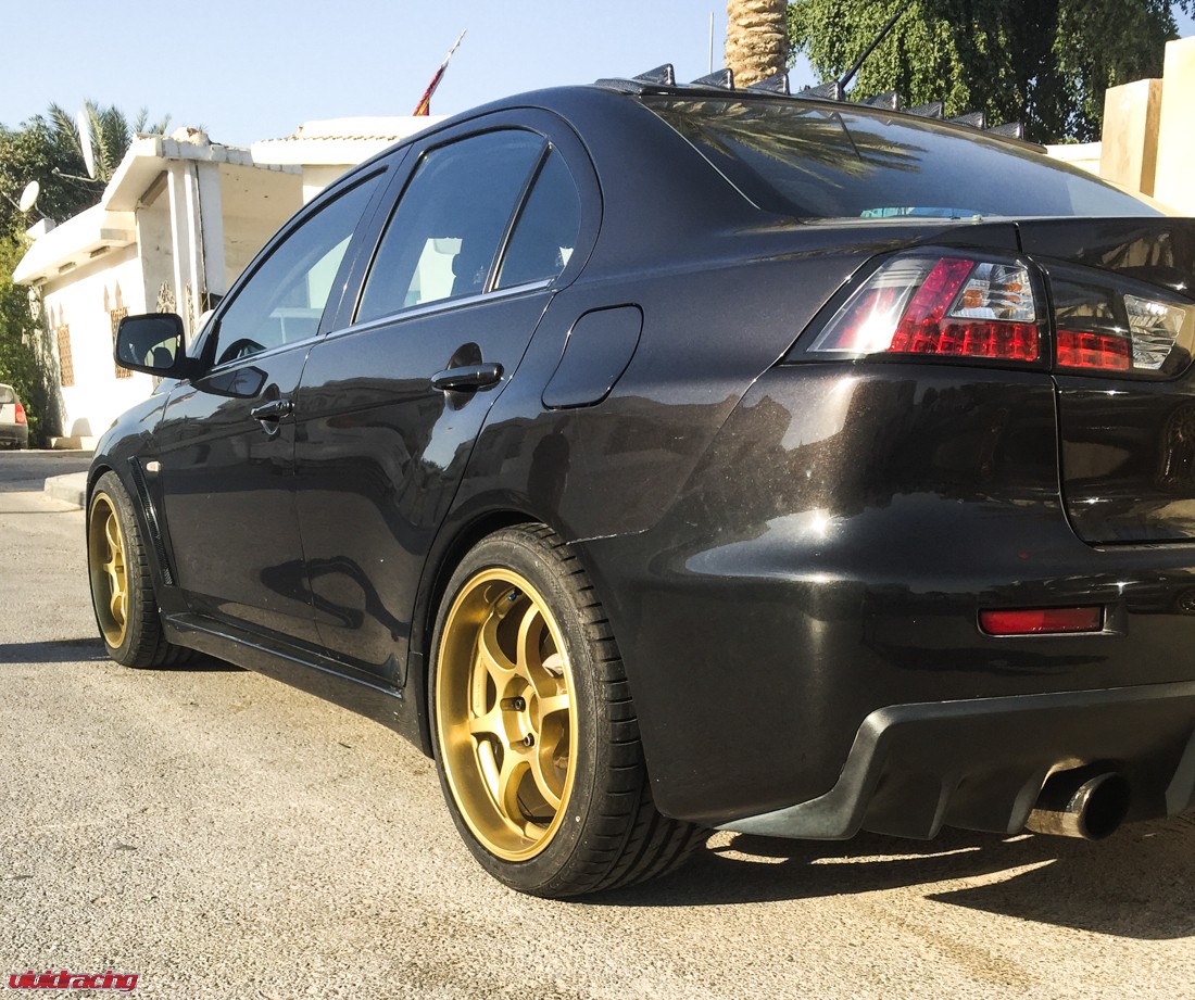 Our customer in Qatar sent us these photos of his Mitsubishi Evo fitted on the new set of 18″ Advan RG-D Wheels in gold finish.