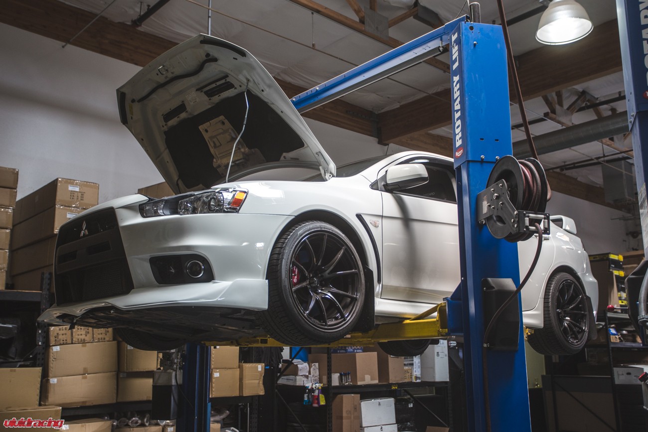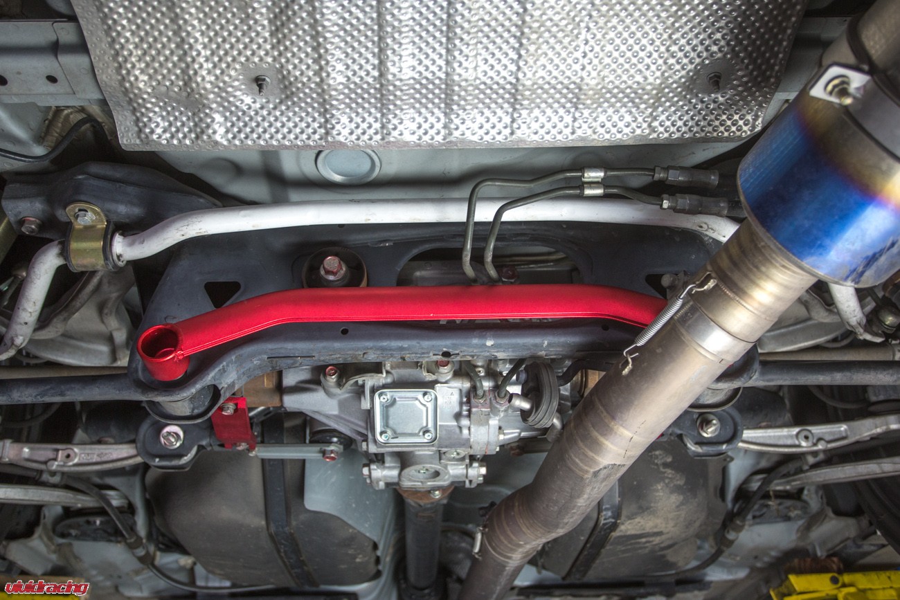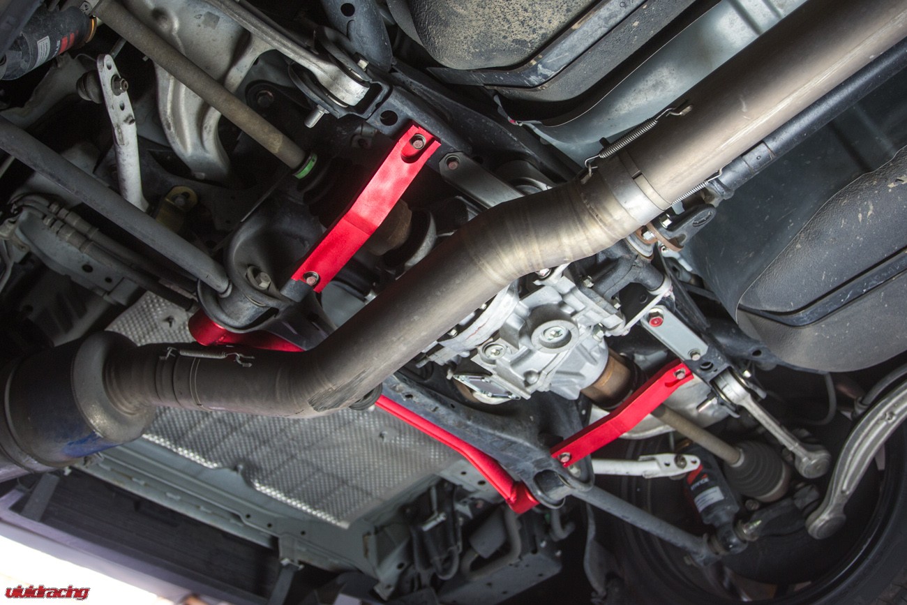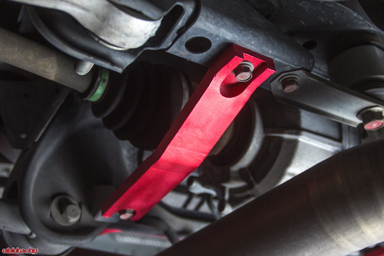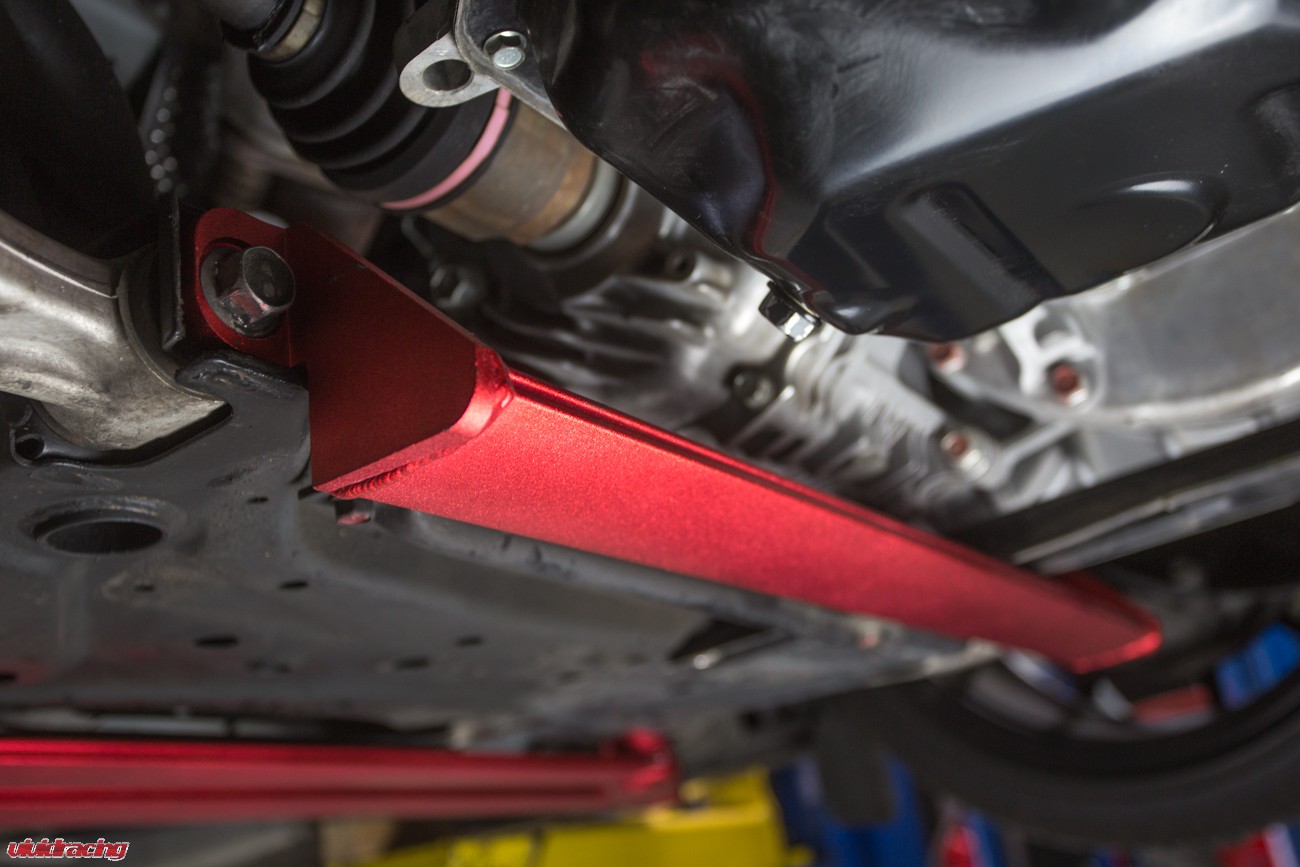 The Agency Power Chassis Braces for the Mitsubishi EVO X are designed to improve body rigidity and reduce chassis flex. Bolting each bar to the chassis reinforces the suspension structure preventing body flex which results in noticeably improved steering in high load driving situations. Traction during cornering is also improved by stiffening the chassis. Each component is made from lightweight Aluminum and is powder coated with a durable textured finish. The Agency Power collection of chassis braces includes the: Front Strut Bar, 4 Point Lower Arm Bar, 2 Point Front Control Arm Bar, 4 Point Rear Diff Bar, 2 Point Horizontal Rear Subframe Bar. Custom powder coating is available or they are instock in our Agency Power red finish!