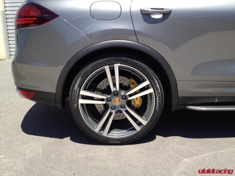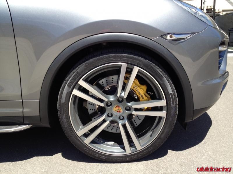 If the new 2011 Porsche Cayenne was not already one bad A MO FO, this customer just took his further! The new Cayenne Turbo was outfitted with a set of front and rear Brembo GT Big Brakes. The front 2piece rotors are a enormous 406mm (16inch) with a 6piston monoblock caliper. The rear is not far behind with a 4piston caliper using a 380mm (15inch) drilled disk. To make sure nobody confused this guy having standard silver or red calipers, he got them in ultra suave yellow. Can I borrow it now! View Brembo Big Brakes for your car here.