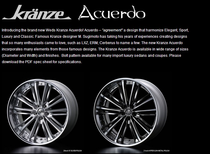 Here are pictures and descriptions of the new Weds Sport Wheels that were released.