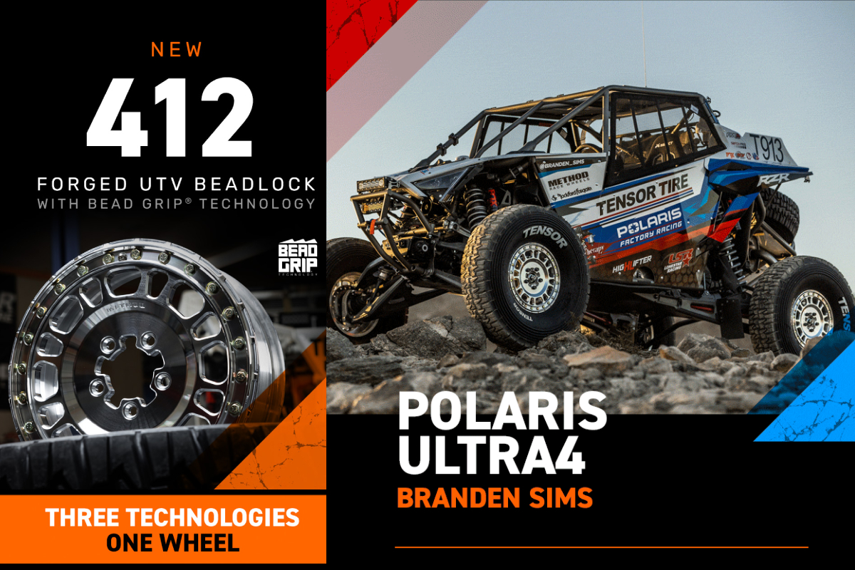 Image above: Branden Sims’ fresh new Polaris Ultra4 car running the Forged 412 Beadlock wheel. A tough machine built for the brutal trails of the hammers.