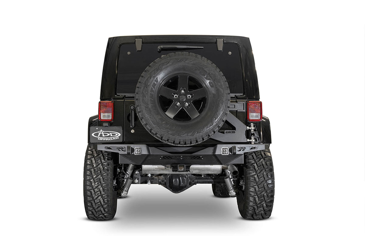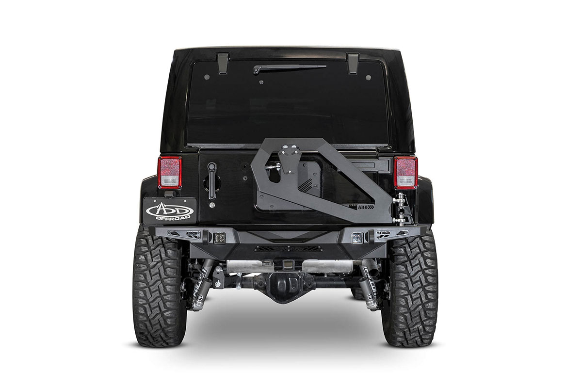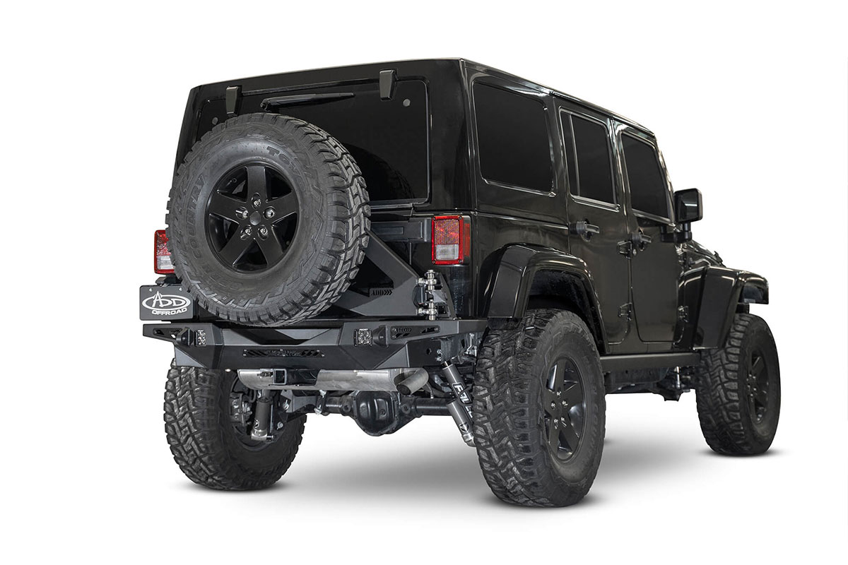 For the JK Wrangler, ADD just released a new front bumper, rear bumper, and rear bumper tire carrier. They designed these new bumpers to improve approach and departure angles by using a much slimmer and tighter design than the OEM bumpers. They’re constructed from high-quality steel and feature a black powder coat finish.