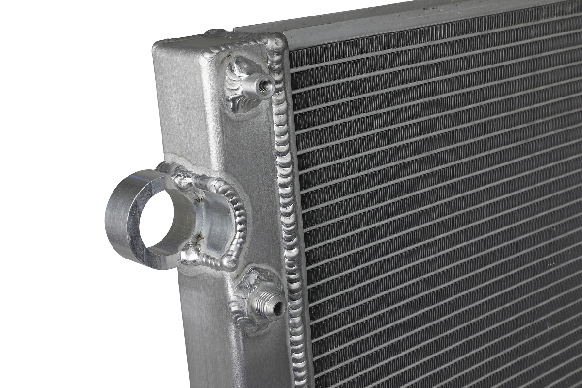 The fabricated end tanks are made out of 1/8″ aluminum plates for the ultimate in strength and longevity. This radiator also features a billet aluminum inlet and outlet for long-lasting durability. All parts are 100 percent TIG-welded for proven strength and reliability. After all, when it comes to engineering for power, performance, protection, and value, no one comes close to aFe Power.