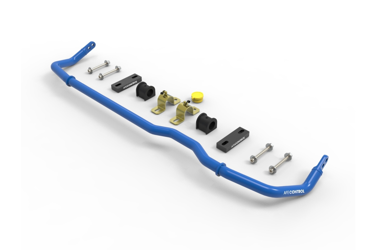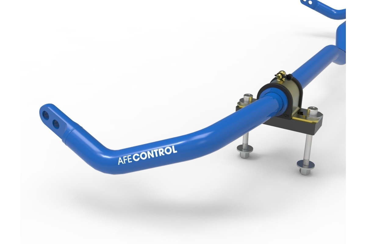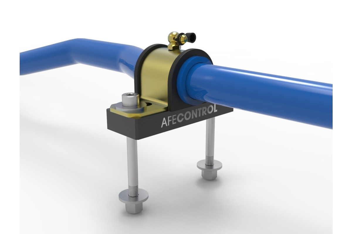 aFe Control end links use PTFE-lined Aurora rod ends with high-articulating studs and misalignment spacer.s These are also length adjustable if you want to fine-tune any static pre-load in the rear bar. aFe Control sway bars include low-deflection polyurethane bushings and high-quality 6061-T6 aluminum black anodized billet brackets for the rear. Brackets are also equipped with grease fittings for convenient maintenance.