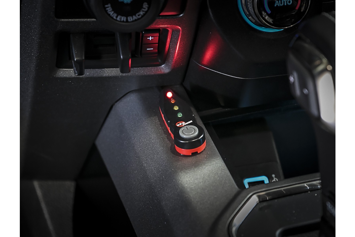 The SCORCHER BLUE Power Module increases your Ford Ranger’s turbo boost and overall performance, producing double-digit power gains as proven by aFe’s in-house dyno. It is loaded with four settings and identifiable with the LED light on the switch or on the smartphone app. The modes are: Stock (Green), Sport (Yellow), Sport+ (Orange), and Race (Red). In-cabin, on-the-fly power adjustments can be made to accommodate all your driving needs. Simply select one of the power settings on the LED control switch or control the module remotely on your phone.