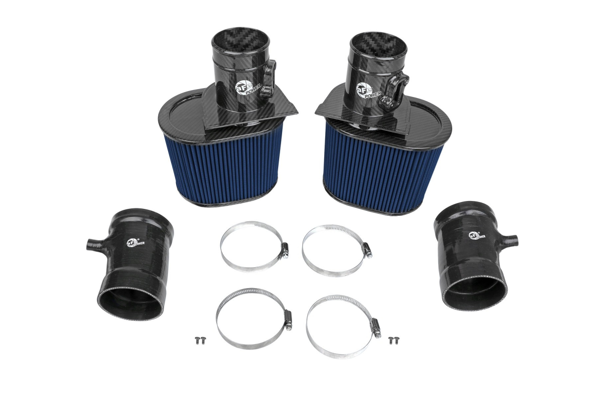 The aFe Track Series Carbon Fiber Cold Air Intake System uses the largest performance air filter available. It includes a dual 6-inch tall 360-degree radial flow air filter that features integrated factory mass airflow sensor mounts designed to provide maximum performance. The 100 percent twill weave carbon fiber bases and tops are both super lightweight and strong to complement the look of your R8’s underhood compartment. The pre-oiled aFe Power Pro 5R air filter has five layers of progressively finer oiled cotton gauze media and is the brand’s highest-flowing filter media, perfect for track use and/or street use. The Audi R8 falls right into these applications, making this CAI a match made in heaven for the German marque’s “supercar”. Best of all, this CAD-designed system retains the factory airbox and cover for an easy installation process. All of the necessary hardware is included and there is no need for any modifications.
