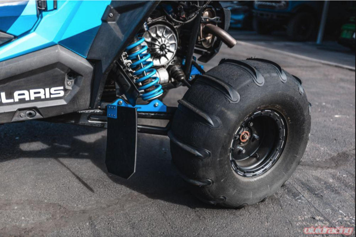 The AP Mud Flap Kit boasts a simple, yet sturdy design that is super easy to install. In just a few minutes, you can be on your way to enjoying your UTV’s protected rear without the possibility of debris getting caught in it. Mounting these mud flaps merely requires removing the lower shock bolt with the lower part of the sway bar link. The factory hardware can be used and absolutely no modifications are needed. A 3/8-thick 10″x14″ flap was used for maximum coverage and protection. The laser-cut bracket offers rigid mounting while also providing a touch of added styling to your machine.