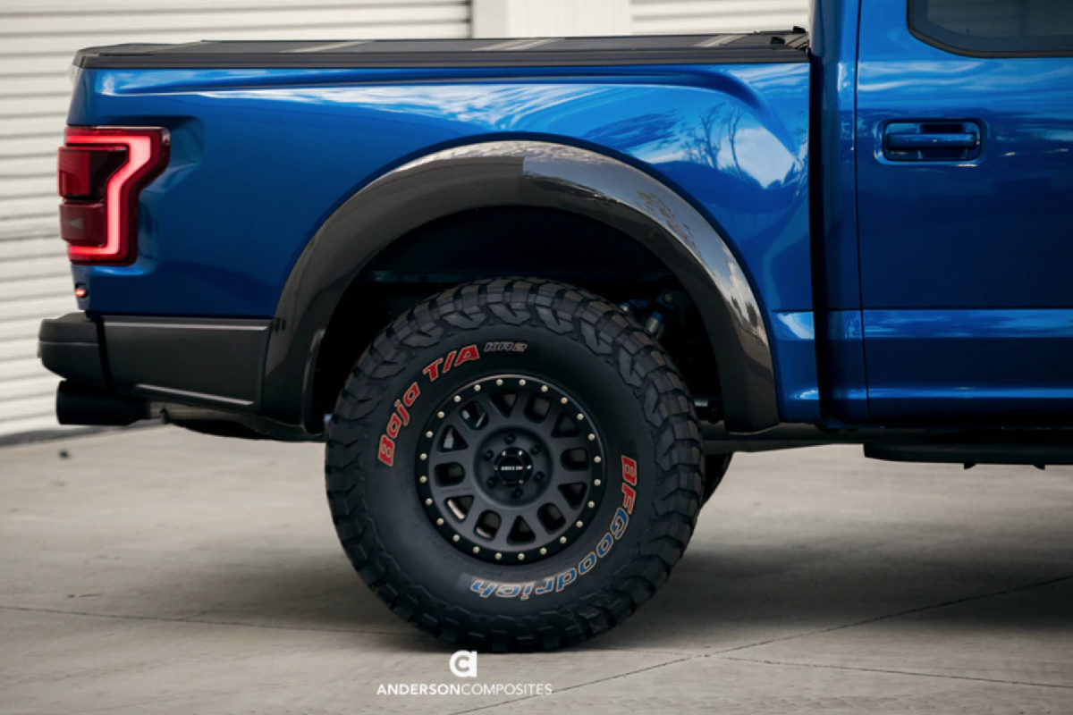 You may remember our project Ford Raptor video last summer, where we adorned the off-road beast with Anderson Composite carbon fiber parts. It truly showed that a little carbon fiber can go a long way and add some flair to the exterior to help set your ride apart. Anderson Composites’ full carbon fiber package for the 2017-2020 Ford Raptor is now available and ready to ship! It includes a carbon fiber hood, hood vents, front fenders, and front and rear flares (OE-type and wide) – all sold separately. Each part is made using a vacuum-infused process with 3K 2×2 twill carbon fiber cloth with a lustrous gloss finish. Not only do Anderson Composites’ carbon fiber parts look amazing, but they are also functional and highly durable to stand up to everything the Raptor was built for. Whether you choose one or all of the following Anderson Composites parts, your Ford Raptor will flaunt a whole new attitude.