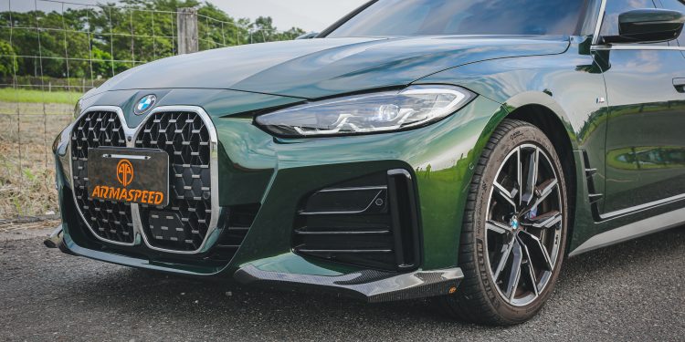 While not all BMW enthusiasts aren’t onboard with the newer generation’s elongated kidney grilles, this carbon front splitter dramatically establishes the front end of this elegant BMW into something a bit more M-car worthy. ARMASpeed’s carbon fiber front splitter isn’t just an aesthetic upgrade; it’s a functional piece that enhances downforce, reduces drag, and maintains stability at high speeds. This is where form meets function in the most beautiful way.