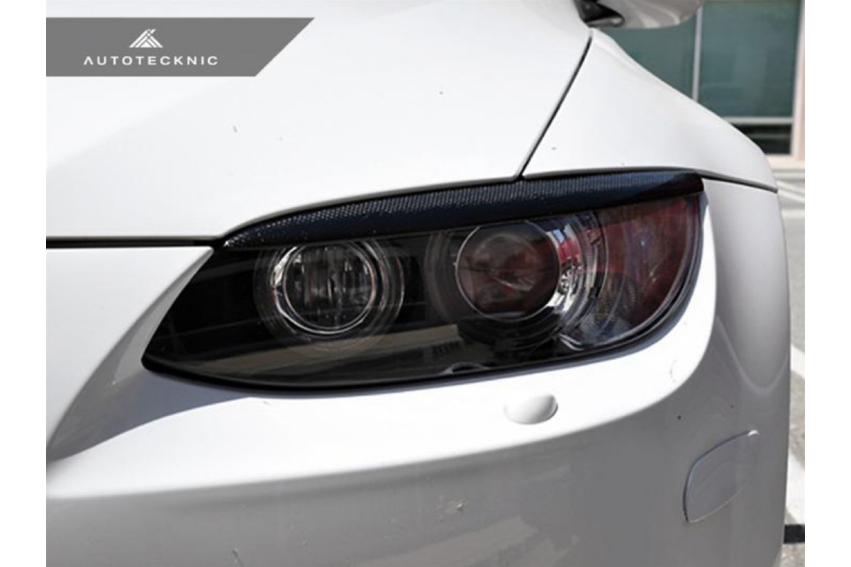 AutoTecknic is pleased to announce its new Carbon Fiber Headlight Covers for the BMW M3 and 3-Series. These beautifully crafted carbon fiber eyelids will fit the E92/ E93 3-Series Coupe and Convertible (Pre-LCI) models in addition to all E90, E92, and E93 M3s. Trust the experts in carbon fiber to deliver the utmost in quality and styling to take your Bimmer to the next level. While these headlight covers may seem like a minor mod, they can really make a big difference on your car’s front end.