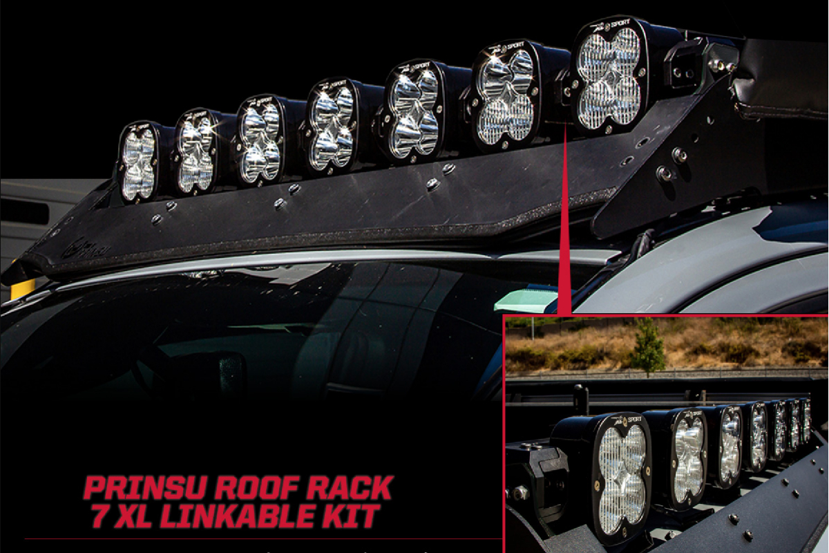 The off-road lighting experts over at Baja Designs have just released the 7 Light XL Linkable Kit for Prinsu roof racks now available for purchase. If your vehicle is equipped with a Prinsu roof rack and you have been in the market to mount an LED light bar on it, this is the product for you. The Prinsu racks come with the option for a 40-inch light bar cutout, and users who have this option can use the new Baja Designs’ turn-key kit that comes with everything you need to get a top performance-based lighting solution.