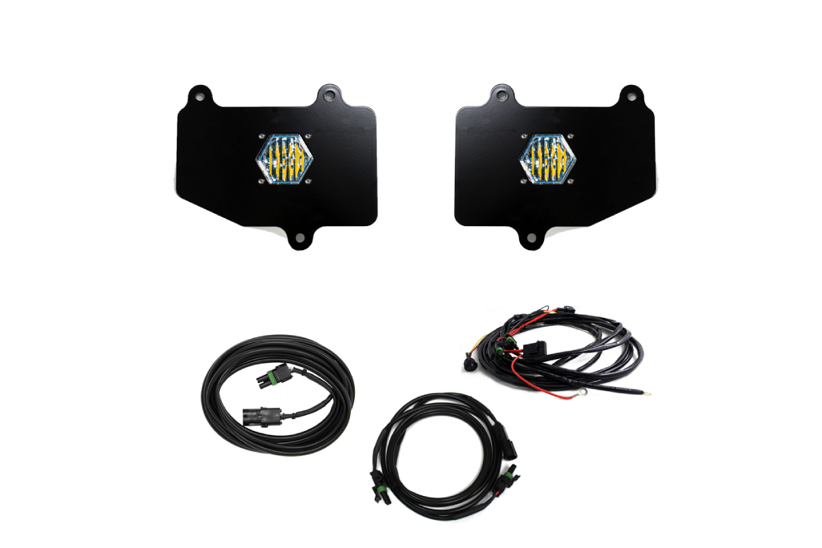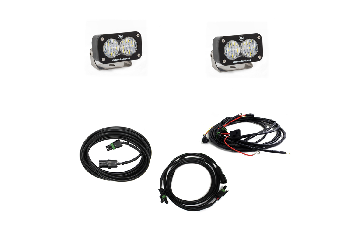 This kit includes one pair of S2 LED lights, vehicle-specific mounting brackets, toggle style harness, and all hardware required to install the kit.