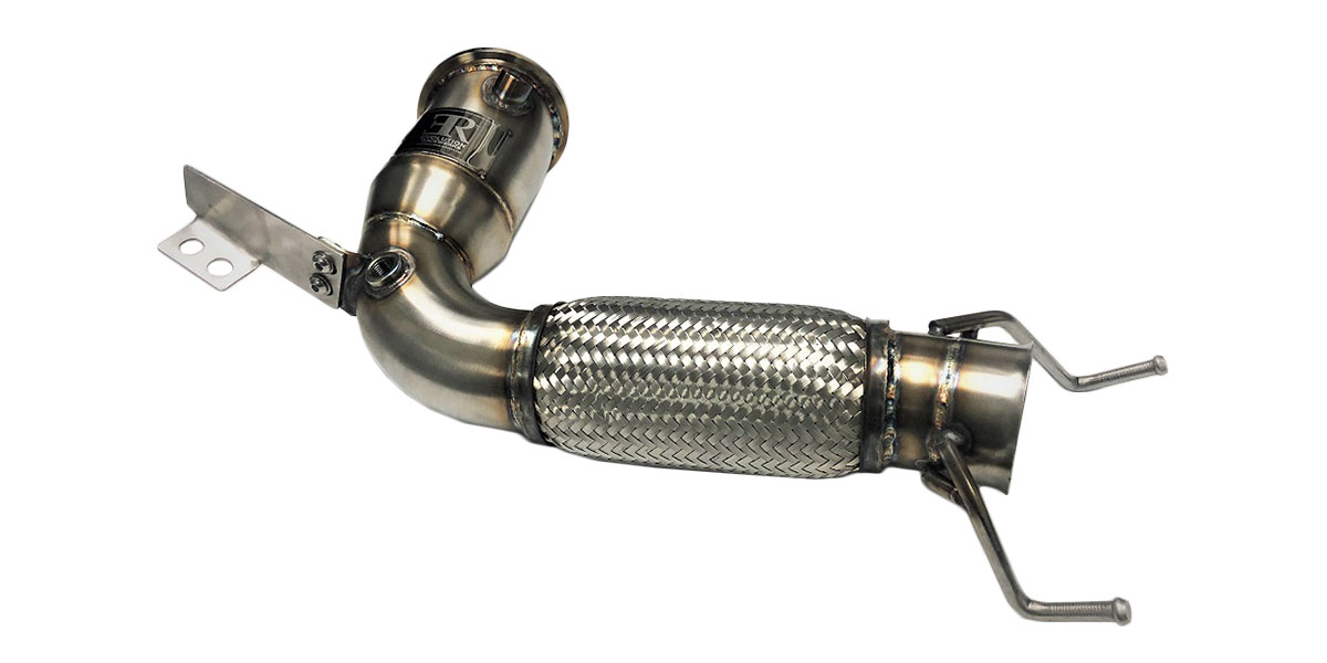 When it comes to exhaust systems, many enthusiasts install a cat-back exhaust, leaving everything before the cat in stock form. While you will find gains with a catback exhaust, the restrictions before the catalytic converter can have a significant impact on power, especially for turbocharged vehicles. For Mini and BMW vehicles with BMW’s B46 engine, Evolution Racewerks now offers a 4” downpipe!