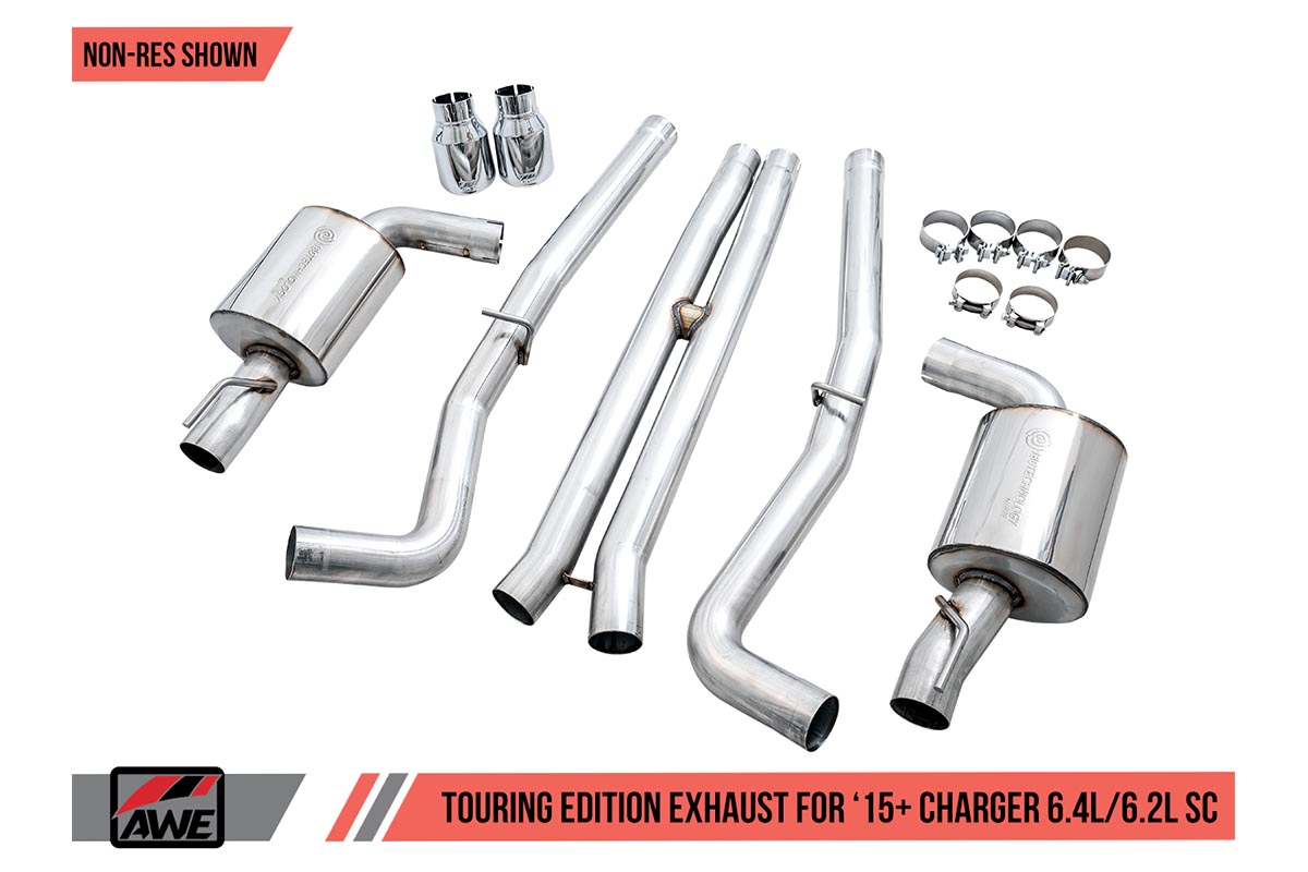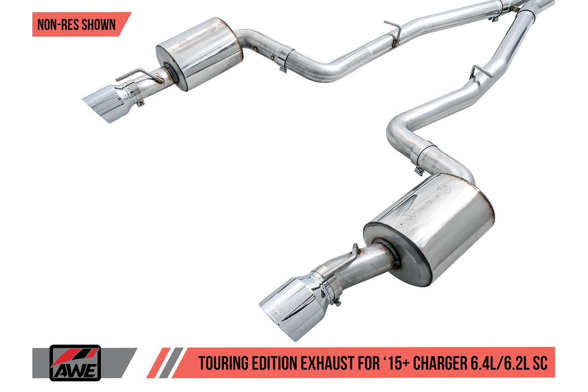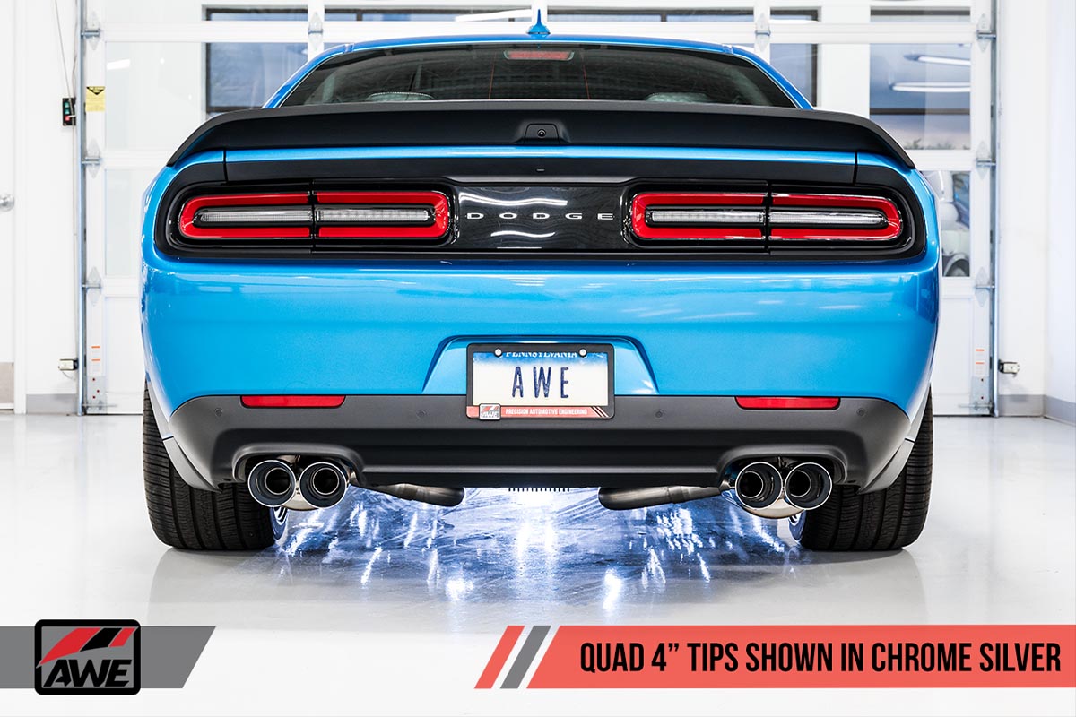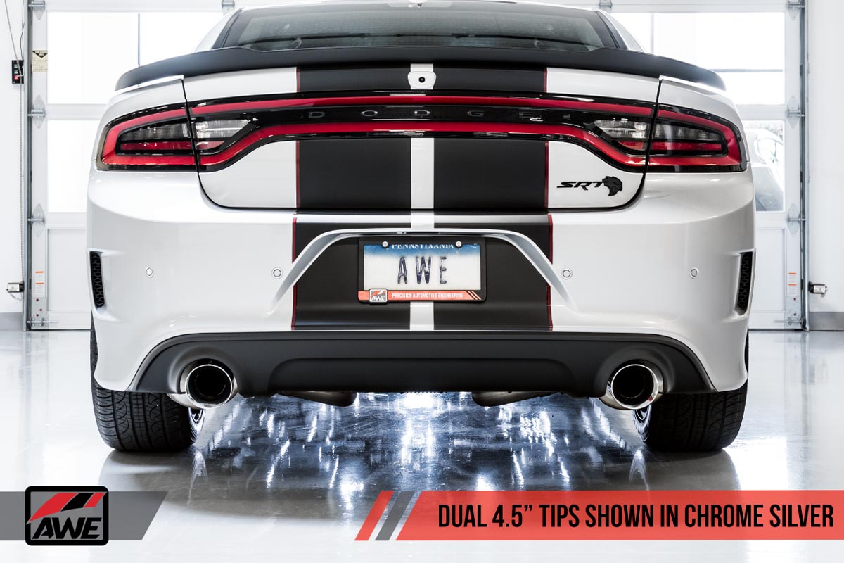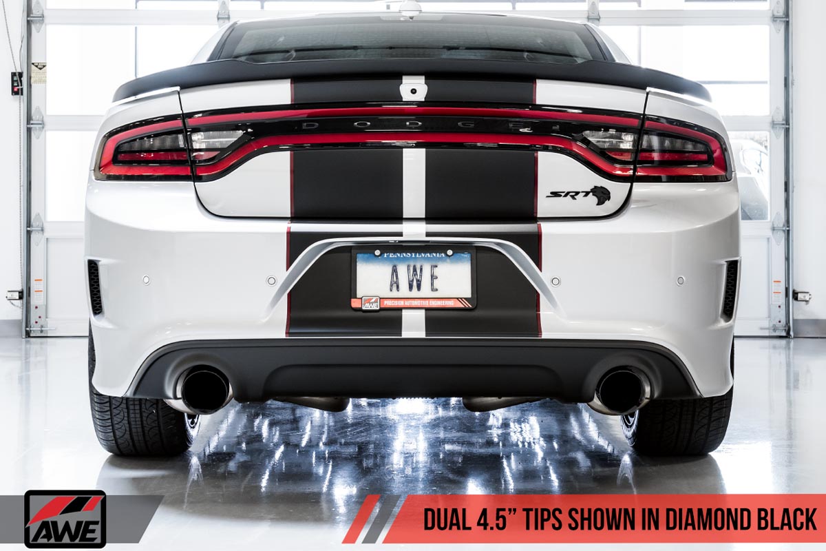 Whether you take your car out for a drive on some country roads, running it down the strip, or cruise on the highway one way or another you are wanting to hear the roaring sound of the V8 under the hood. Dodge naturally has to restrict the exhaust for emissions purposes, but many felt that it was a little too restricted. Some will resort to deleting the factory resonators or catalytic converters but the issue remains that the exhaust tubing itself could be larger to help the flow. AWE Tuning recognized this issue and released a whole suite of exhaust systems for the 2015+ Dodge Challenger / Charger with the 6.2L Supercharged Hemi or the 6.4L Naturally Aspirated Hemi.