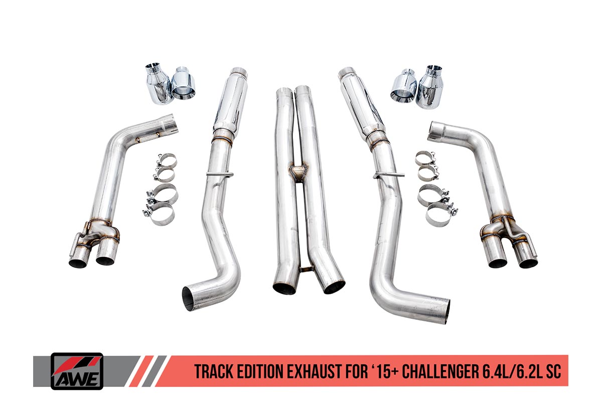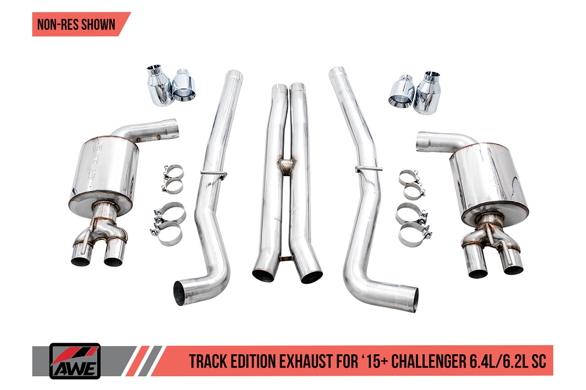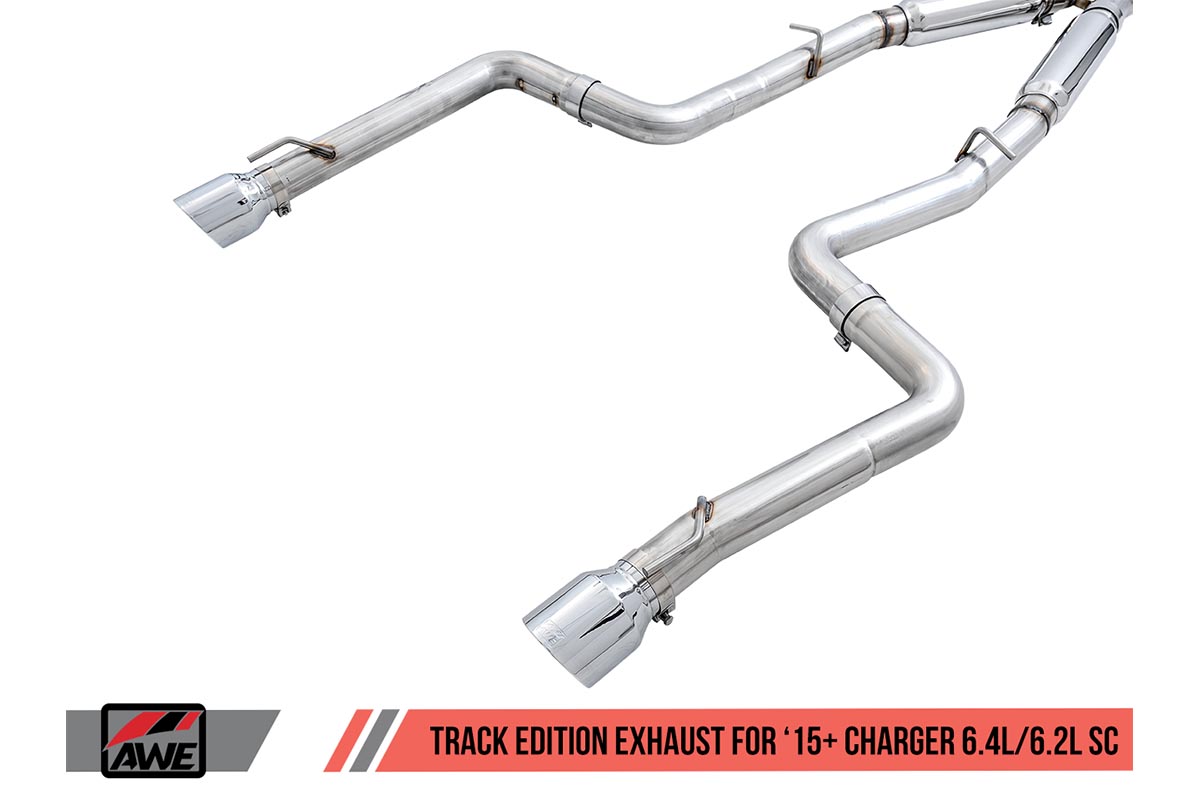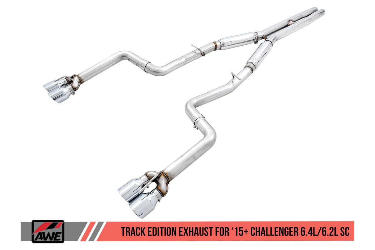 Whether you take your car out for a drive on some country roads, running it down the strip, or cruise on the highway one way or another you are wanting to hear the roaring sound of the V8 under the hood. Dodge naturally has to restrict the exhaust for emissions purposes, but many felt that it was a little too restricted. Some will resort to deleting the factory resonators or catalytic converters but the issue remains that the exhaust tubing itself could be larger to help the flow. AWE Tuning recognized this issue and released a whole suite of exhaust systems for the 2015+ Dodge Challenger / Charger with the 6.2L Supercharged Hemi or the 6.4L Naturally Aspirated Hemi.