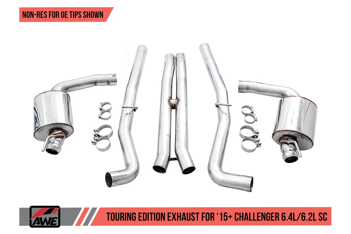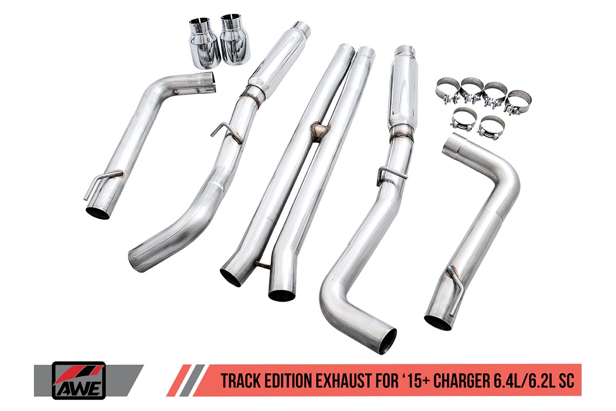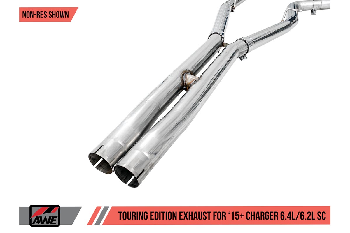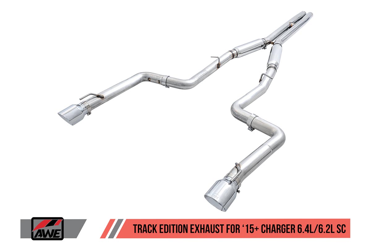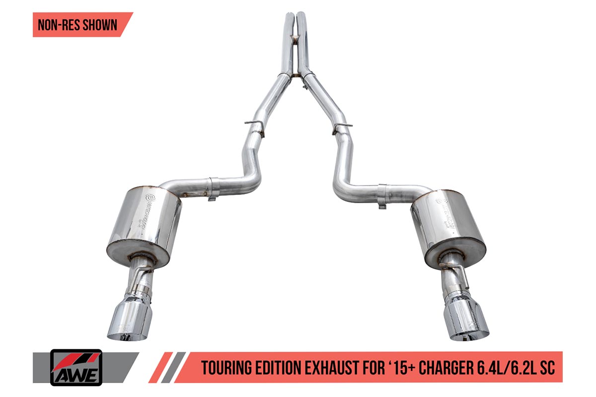 Whether you take your car out for a drive on some country roads, running it down the strip, or cruise on the highway one way or another you are wanting to hear the roaring sound of the V8 under the hood. Dodge naturally has to restrict the exhaust for emissions purposes, but many felt that it was a little too restricted. Some will resort to deleting the factory resonators or catalytic converters but the issue remains that the exhaust tubing itself could be larger to help the flow. AWE Tuning recognized this issue and released a whole suite of exhaust systems for the 2015+ Dodge Challenger / Charger with the 6.2L Supercharged Hemi or the 6.4L Naturally Aspirated Hemi.