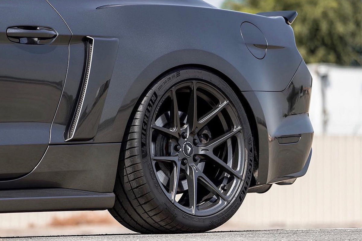 The V-FF 101 is a modern take on the classic split five-spoke design and looks great under a Mustang. The V-FF 107 is a modern take on the classic mesh design that was popular in the 70s and 80s motorsport era. The 107 takes two split five-spoke design and combines them to give it that mesh look. One of Vivid Racing’s employees, James, has V-FF 107 wheels on his Mustang and they look absolutely killer. Both the V-FF 101 and V-FF 107 are being offered in 20×10 and 20×11 fitments which are designed specdifically for a 275/35/20 and 315/35/20 size tires on the Mustang.
