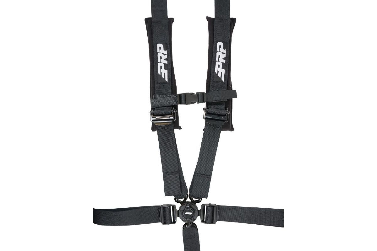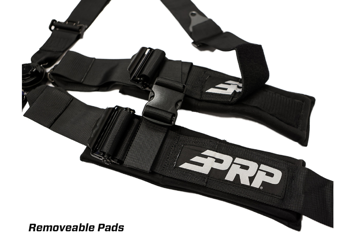 PRP’s Cam-Locks feature the brand’s exclusive CleanLatch Technology, with dust-resistant seals and rubberized tab ends to prevent dirt and dust from getting in. Other new features include thick shoulder pads for comfort, that are now removable so you can easily clean them, and the ability to use this harness with any other neck restraint system. The EZ adjusters on the shoulders and lap belts allow you to adjust your belts quickly, even if they are dirty or muddy. The bolt-in tabs on the shoulders and lap area are easily removable as well, so you can swap in clip-in tabs if desired. The new PRP 5-point harness features all-black hardware and a removable sternum strap. Best of all, it’s SFI 16.1 certified for racing.