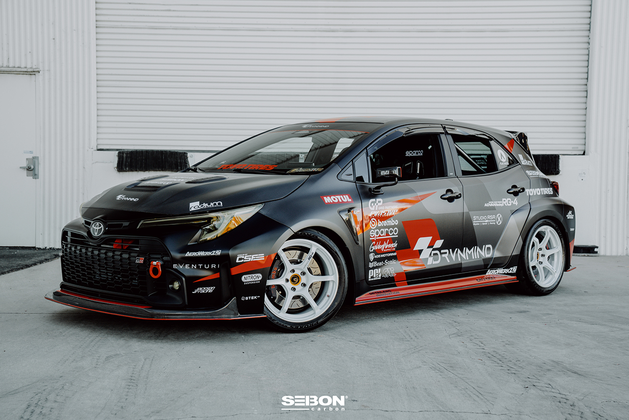 Seibon has shocked the GRC community this morning with the surprise release of a full carbon program for the Toyota GR Corolla. This à la carte body kit program consists of nine additional/replacement pieces that will transform your GRC into a sharp and aero-forward hot hatch!