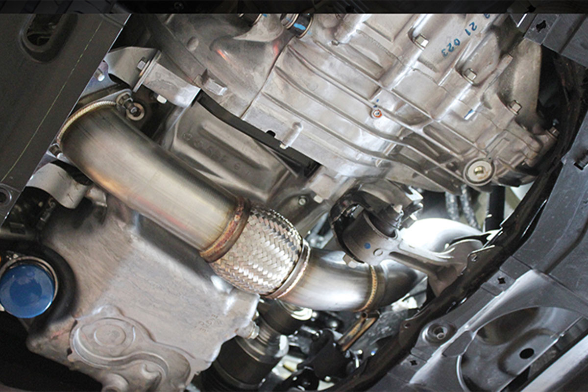 For FK8 owners who want the best exhaust flow, the Greddy front overpipe is a must. The front overpipe is installed between the downpipe and the catback section of the exhaust. With a big bend and small piping, the OEM overpipe is a performance bottleneck, and replacing it with the 3” Greddy overpipe massively improves performance.