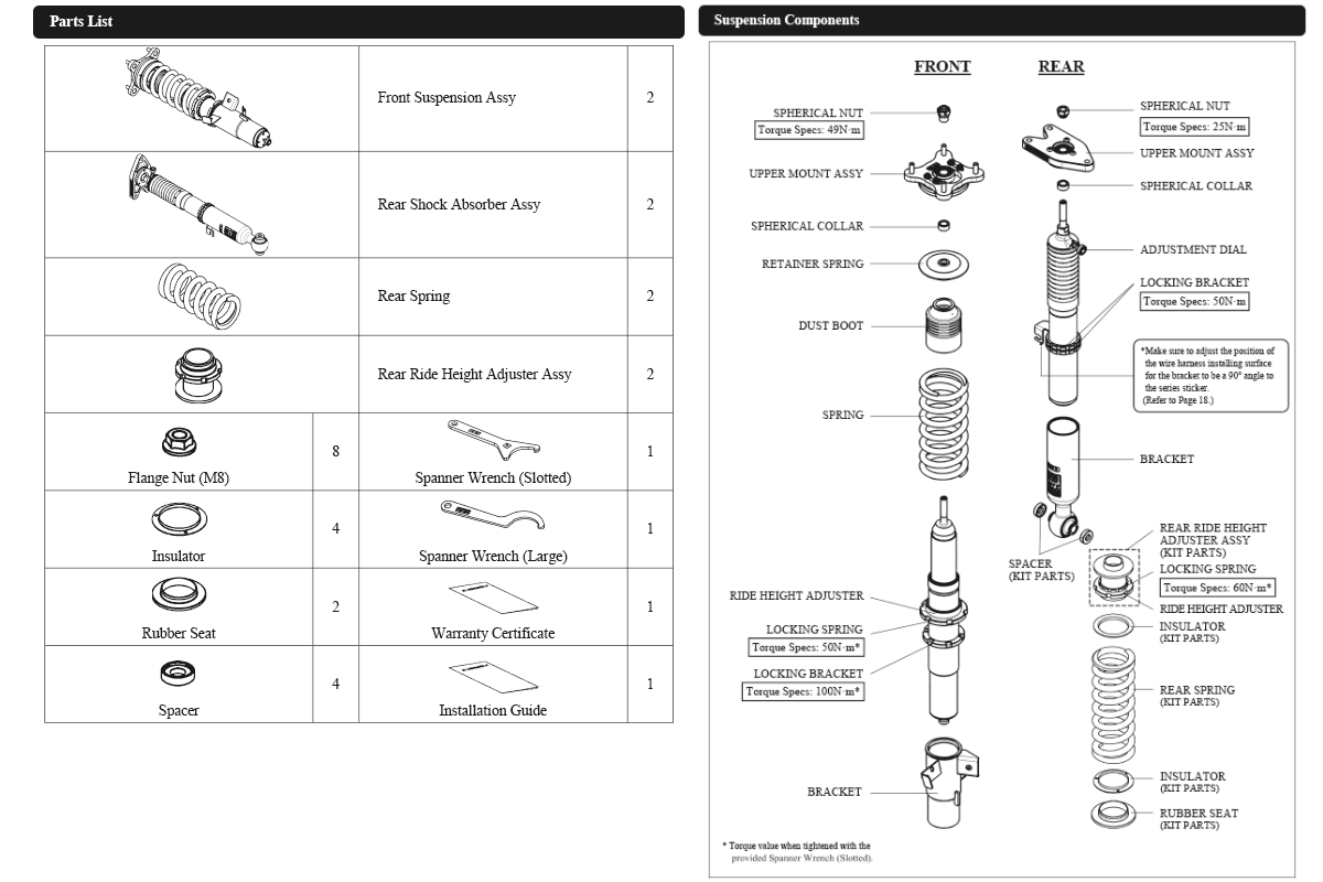 - Spring Rate Change at Factory: F=Yes | R=Yes