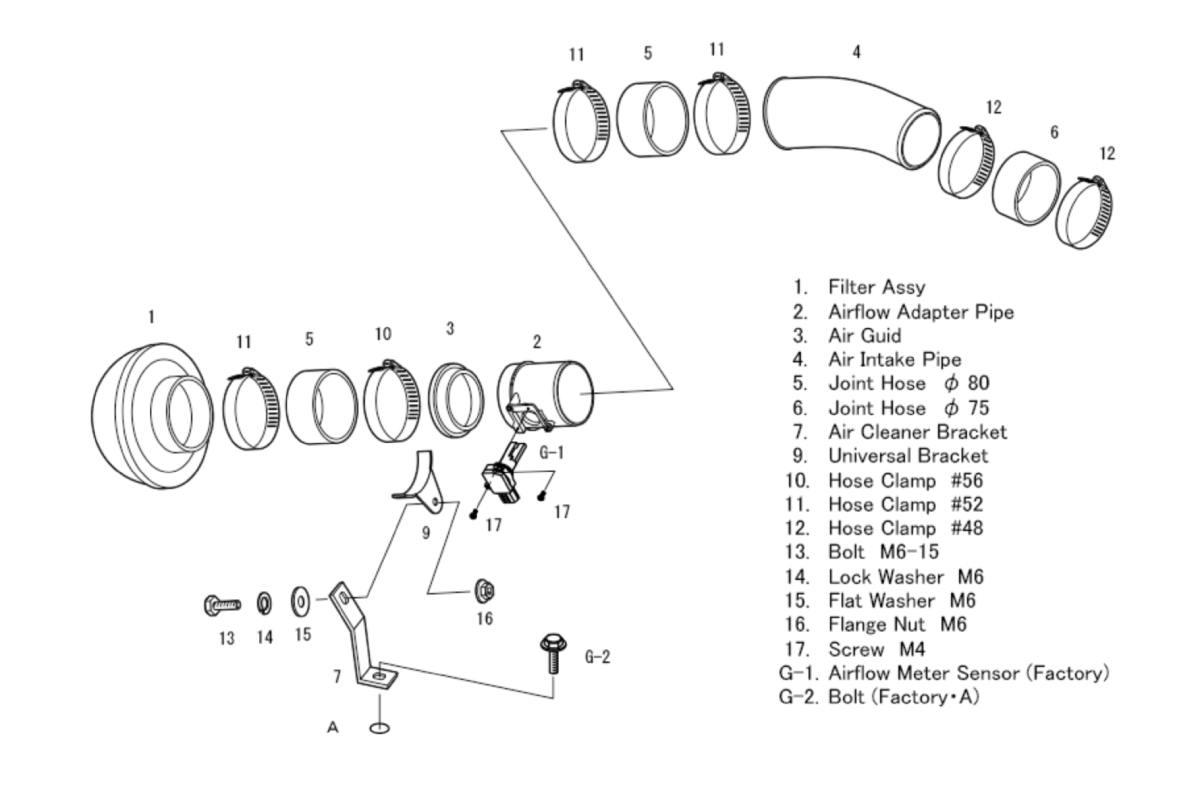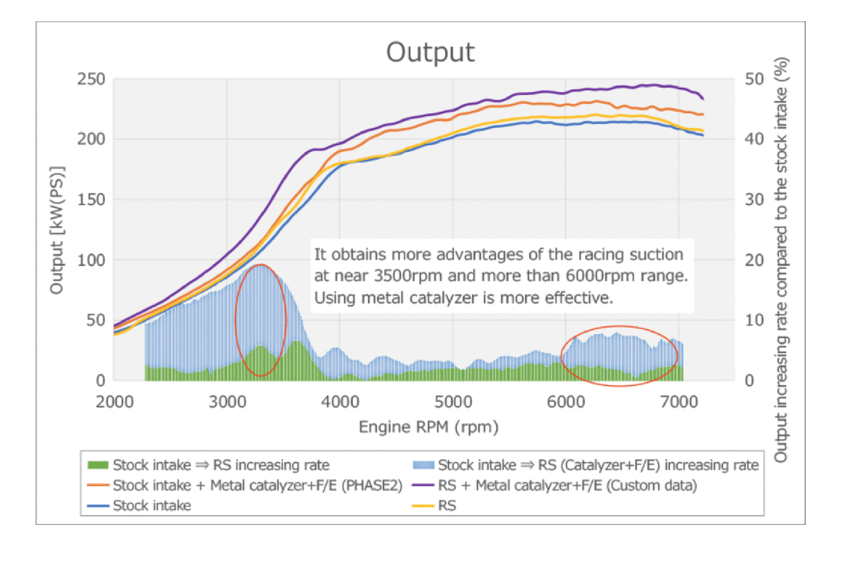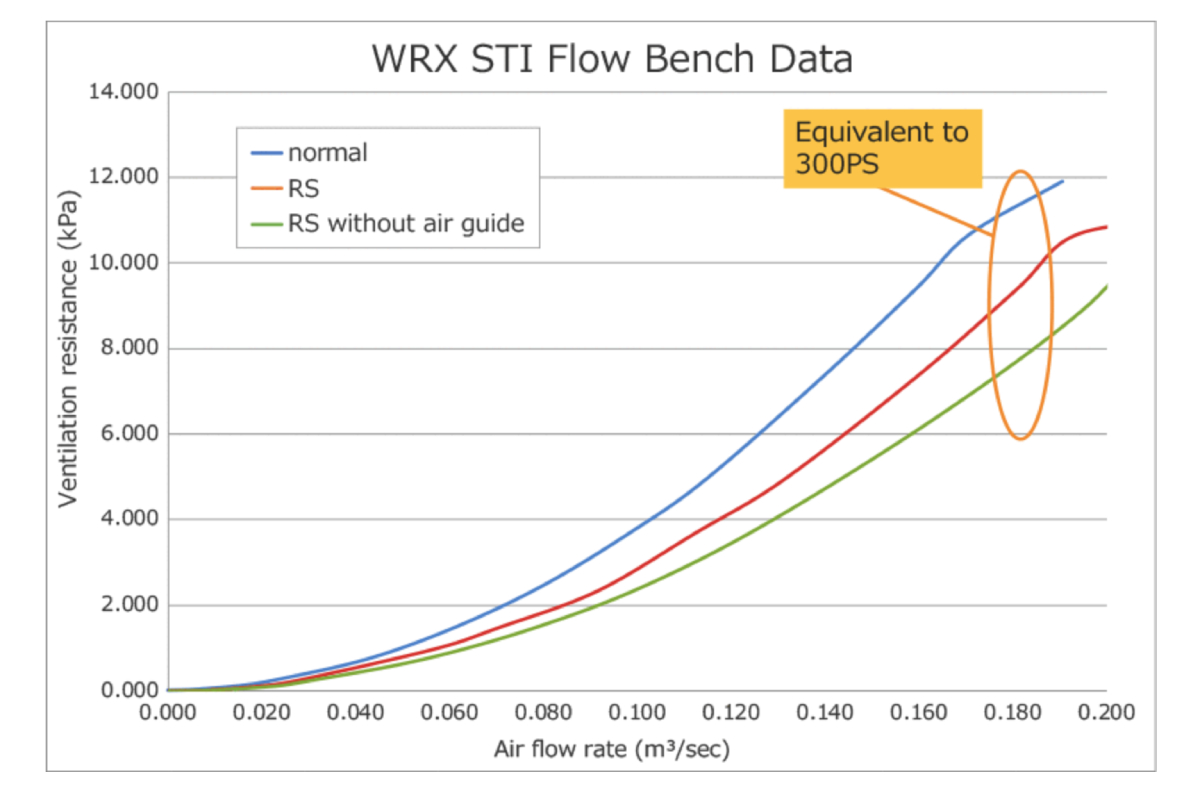 - To improve air intake efficiency, HKS changed from a flexible stock rubber hose to an aluminum pipe. This significantly reduces airflow restriction during the HKS flow bench test compared to the stock intake system.
