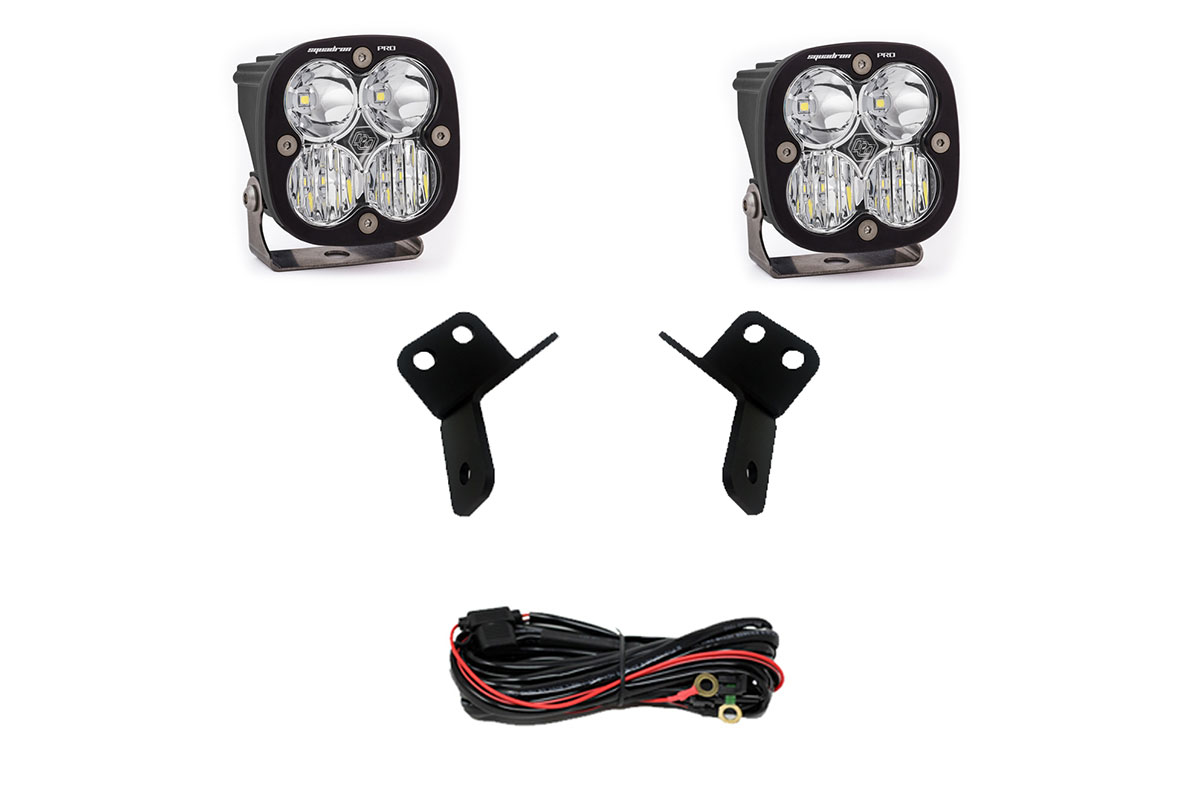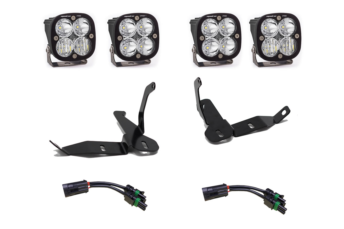 For those who want completely replace the weak OEM headlights, the Baja Designs also offers their new headlight kit. The headlight kit is available with either 4x Squadron Sport or Squadron Pro lights, which are mounted in the OEM headlight location with the included bracket.