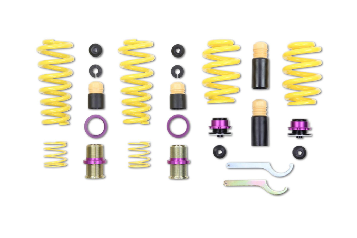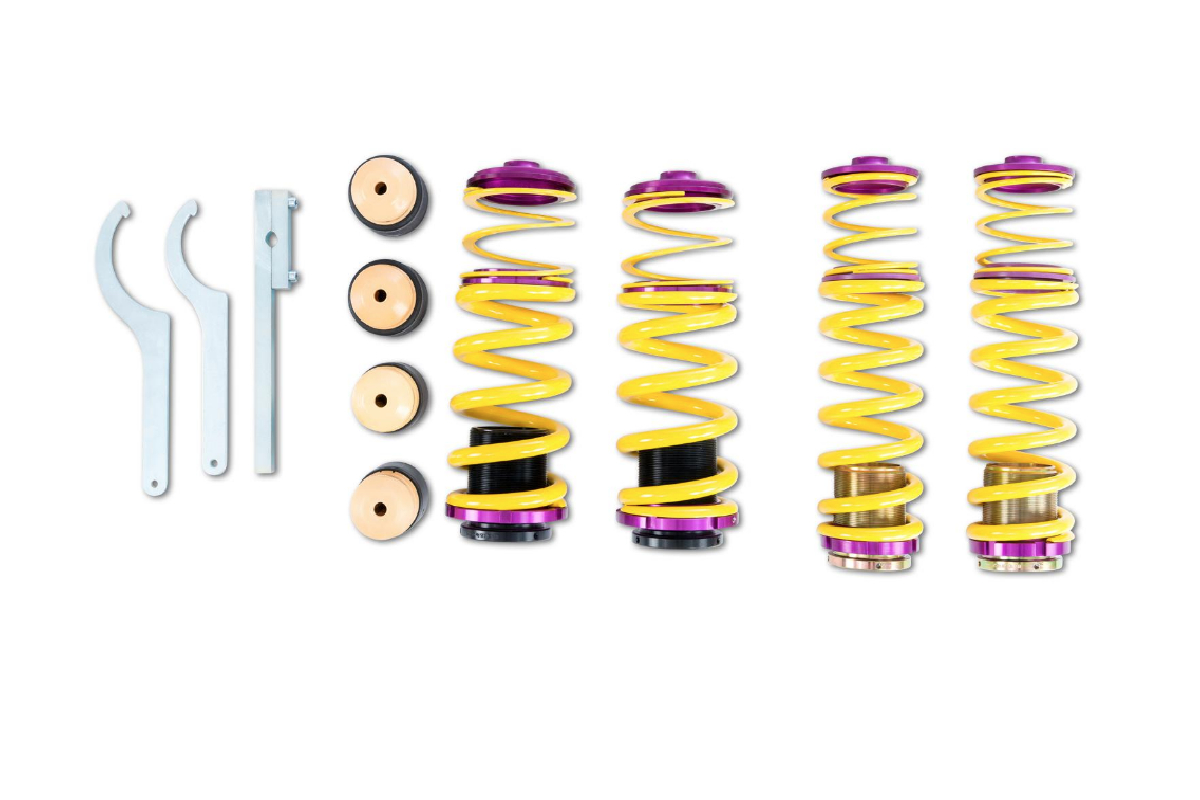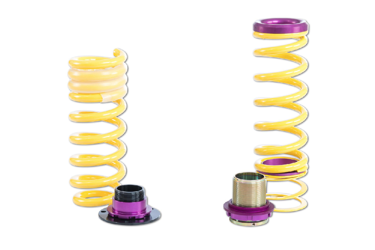 OEM Quality: KW uses high-quality springs made of chrome-silicon steel with vehicle-specific spring rates adjusted to the respective standard suspension dampers and wheel loads. At the development of the respective spring kits, KW Suspensions considered that the spring rates will perfectly harmonize with the different damper characteristics of your adaptive series suspension. With their high-quality (surface) finish as well as the KW height adjuster, these spring kits always include vehicle-specific bump stops with a dust protection system to guard your standard suspension against tear and wear caused by spray and salt.