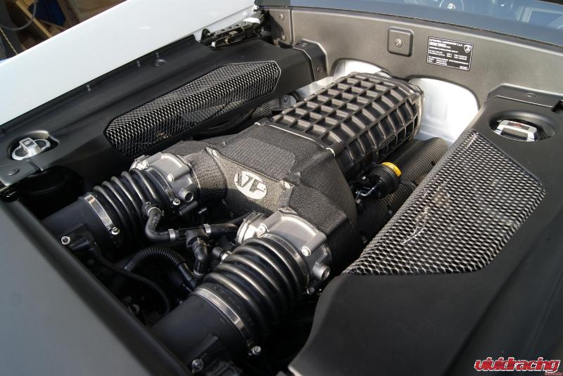 VF-Engineering (Anaheim, California) announces the release of its latest supercharger system for the Lamborghini Gallardo LP560-4. The latest product to eminate for the VF-Engineering R&D facility in Anaheim, CA is a bolt on roots style supercharger system adding 200hp and 200lbs of torque to the V10 Gallardo. Available for the 2008 and up models, this system uses the Eaton/Magnuson TVS2300 4-lobe roots blower with an air/water aftercooling system. Packing a lag-free instant punch of 5psi from as little as 2000rpm, boost gradually climbs to 6.5psi at redline.