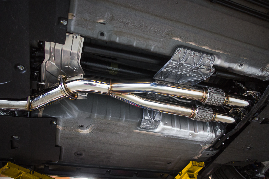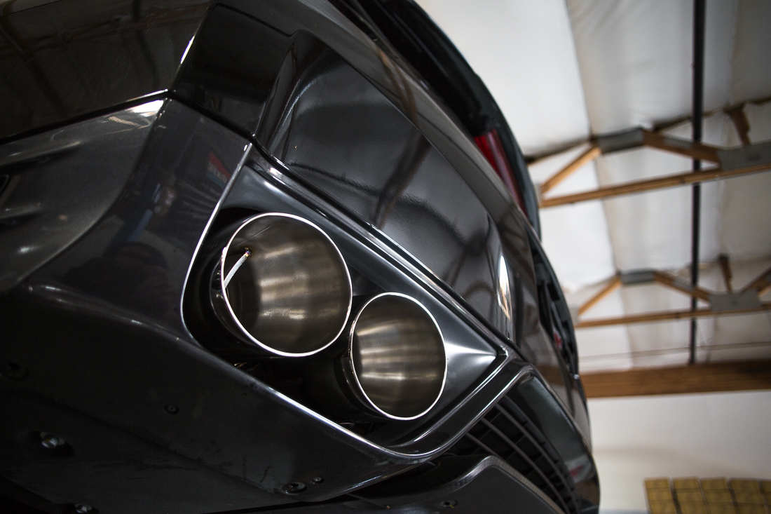 The Nissan GT-R keeps getting better and better since its USA release in 2009. The latest 2015 Nissan GT-R produces more than 500 horsepower to rival the Porsche Turbo S in 0-60 and even Nurburgring lap times. So what can be done to make the Nissan GT-R even better? More horsepower with the help of a Meisterschaft full downpipe back exhaust system. The Meisterschaft GT exhaust is one of the most popular exhaust systems for the GTR with its all stainless steel construction, section welding, and beautiful tips. Including the installation of the high flow Y-pipe, nearly 30 horsepower is gained from this upgrade. In addition to the new sexy sounding exhaust is a APR carbon fiber GTC wing to help with aerodynamics. More downforce is required when hitting 100+ mph speeds on the track and the carbon fiber APR wing is just the thing to make this happen. In it’s stock form, the Nissan GT-R is well equipped, now this GT-R is ready for further battle and setup to out perform others. Check out more Nissan GT-R performance parts here.