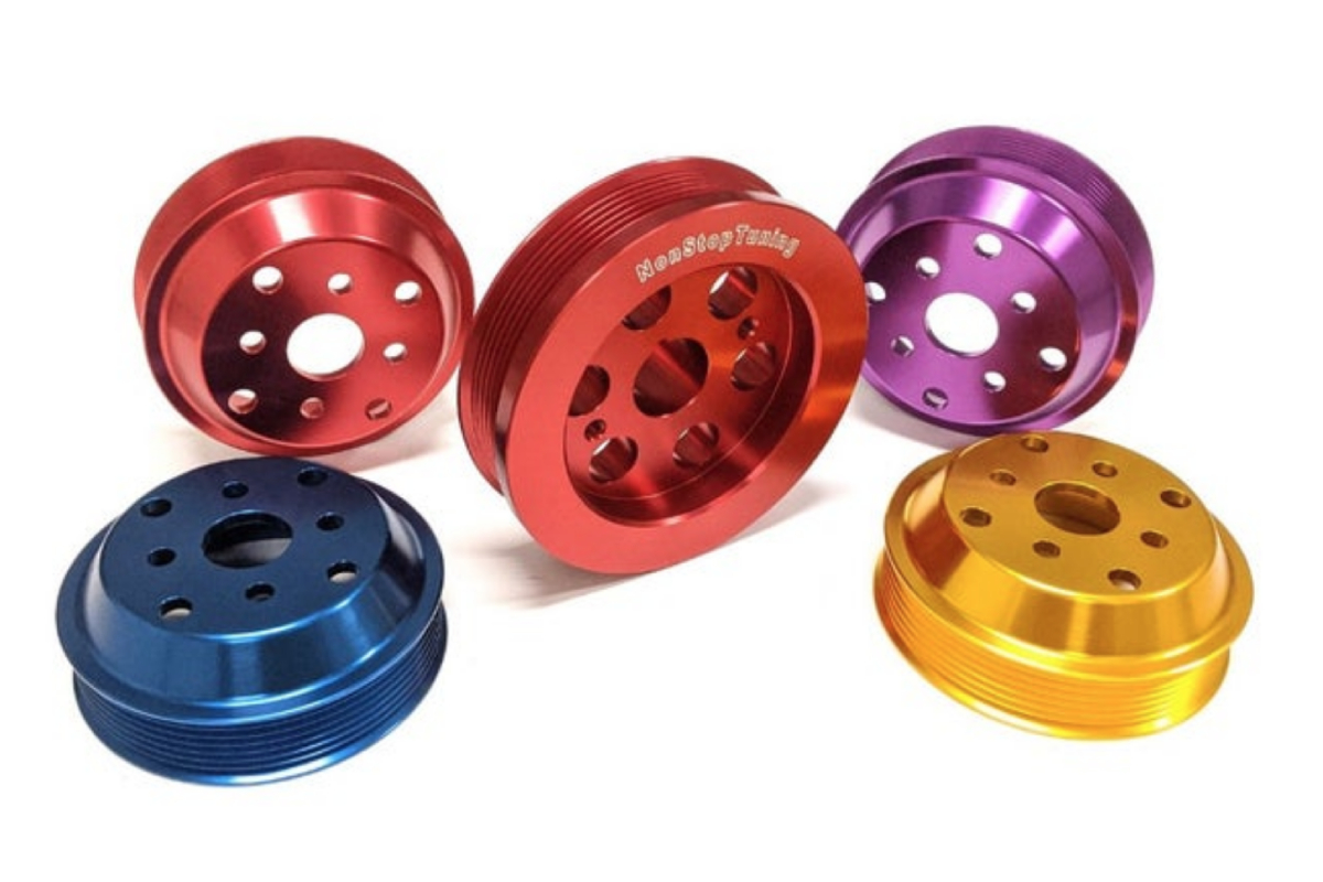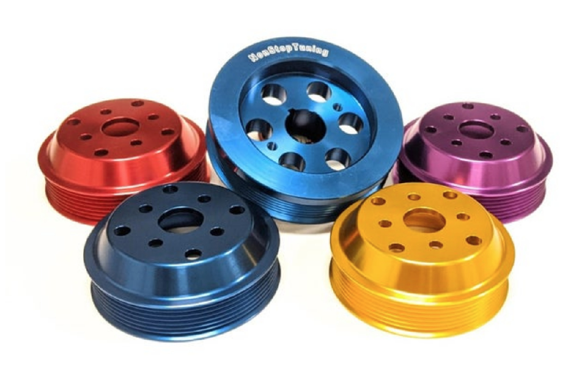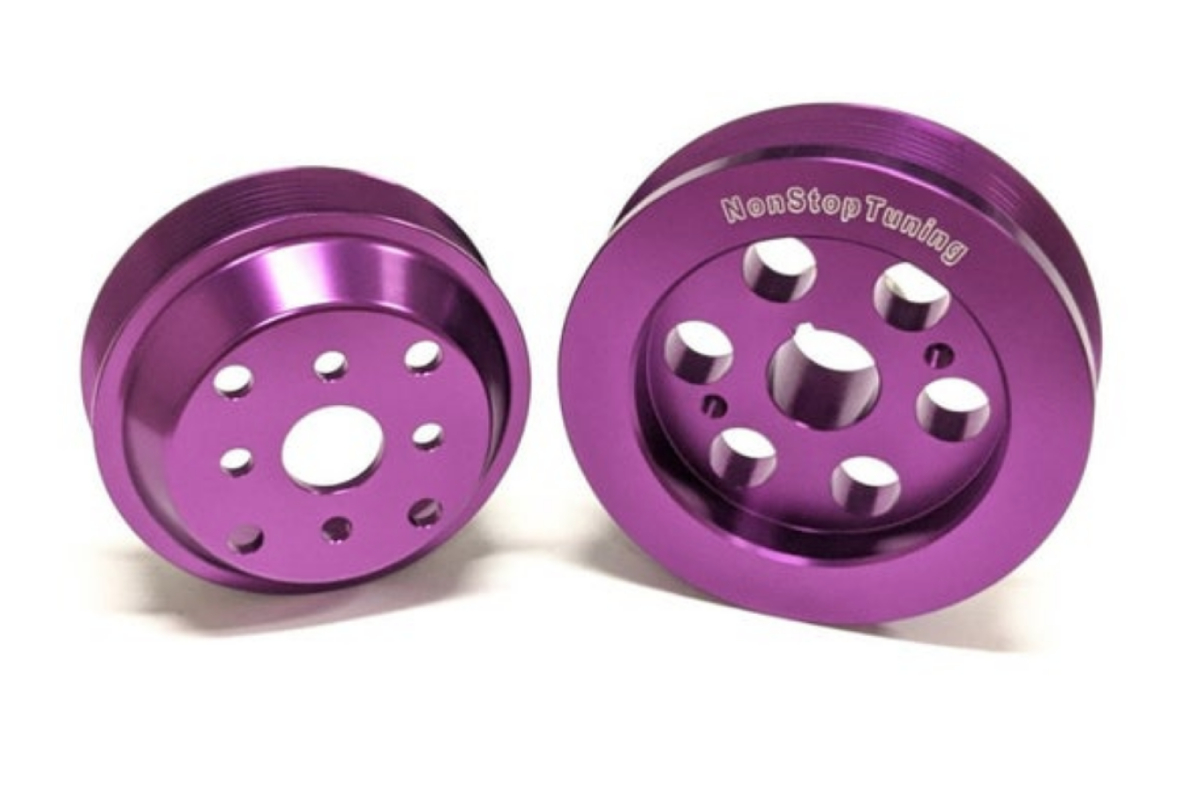 The NonStopTuning Pulley Kit is designed for tuners looking to reduce weight and increase the throttle response of their engines. In fact, it provides between 70-75% in weight reduction versus OEM while being just as strong or even stronger. This pulley kit will also give you a smoother operation and higher MPGs.