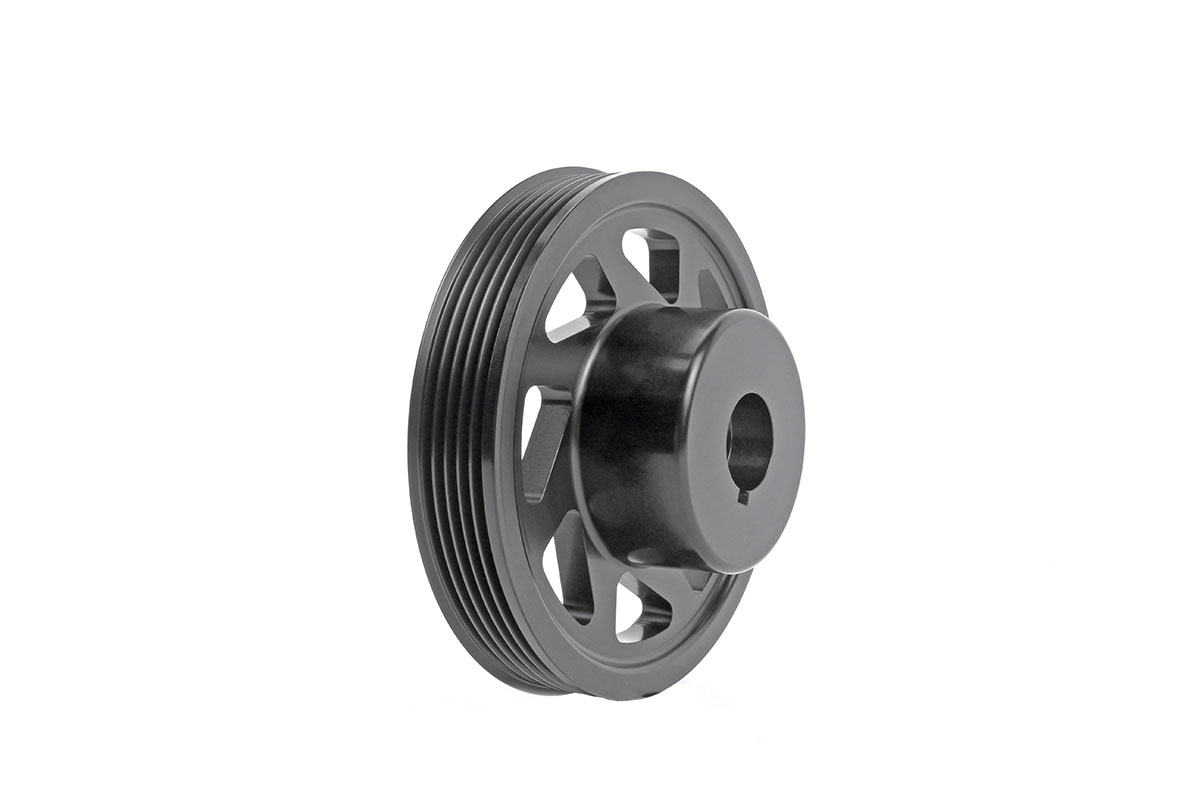 For anyone who wants to make as much power as possible from their engine, reducing power loss is key. All the accessories at the front of your engine take power away from the engine, and the heavier components make this issue even worse. For this reason, upgrading to a lightweight crank pulley is a great way to increase power at the wheels by decreasing power loss from accessories.